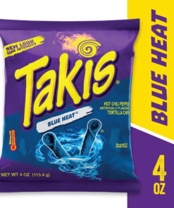 Takis Blue Heat Rolled Tortilla Chips, Hot Chili Pepper Artificially Flavored, 4 Ounce Bag