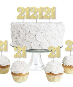 Big Dot of Happiness Gold Glitter 21 – No-Mess Real Gold Glitter Dessert Cupcake Toppers – 21st Birthday Party Clear Treat Picks – Set of 24