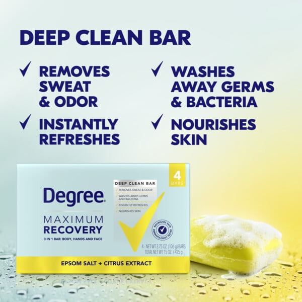 Degree Maximum Recovery Deep Clean Soap Bar Citrus Extract, 3.75 Oz., 4 Count