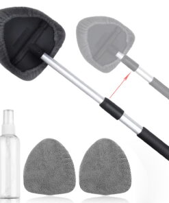 Anpro Car Window Cleaner, Microfiber Car Windshield Cleaning Tool with Extendable Handle and Washable Reusable Cloth Pad Head Auto Interior Exterior Glass Wiper Kits