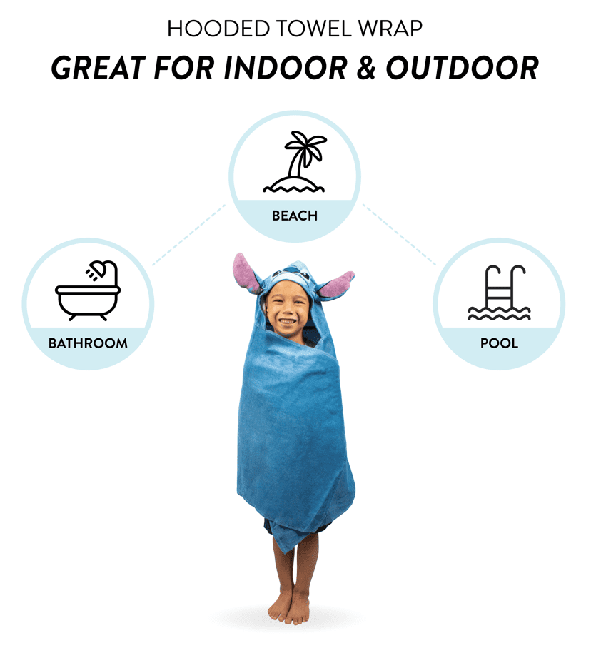 Stitch Kids Hooded Towel and Character Loofah Set, Cotton, Blue, Disney