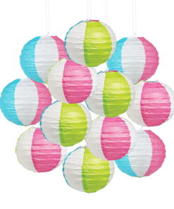 Mini Pool Party Beach Ball 4 1/2′ Hanging Paper Lanterns, Party Decor, Birthday, 12 Pieces