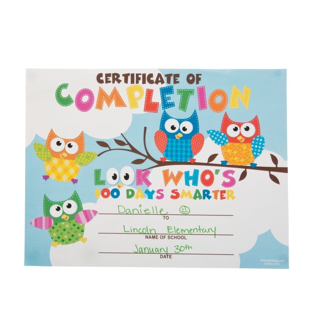 Give your students a whoooot with these 100th Day Owl Certificates. Present your star students with these adorable paper certificates and declare them "100 days smarter." These certificates will be "owl" the rage this school year. Host a fun ceremony and make your students feel extra special and proud of their 100th day accomplishments. (25 pcs per unit) 11" x 8 1/2" © OTC