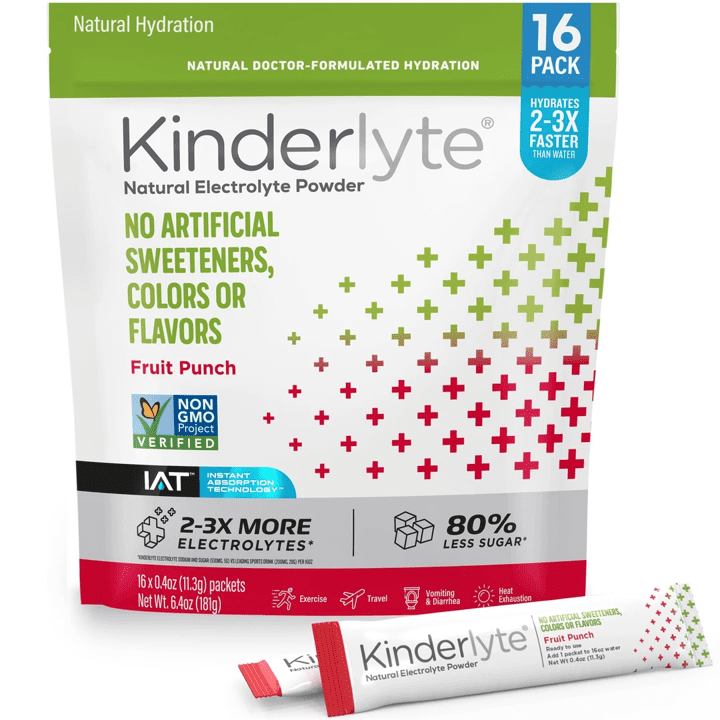 Kinderlyte Natural Electrolyte Powder Drink Mix, Fruit Punch, 0.4 oz Packets (16 Count)