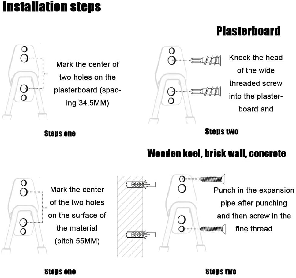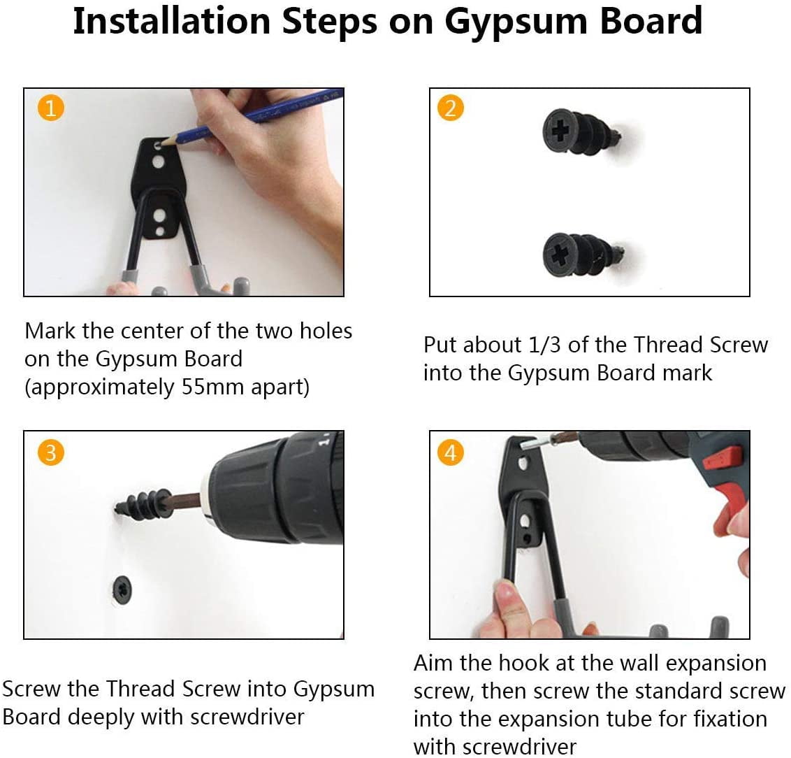 - 4.【EASY TO INSTALL】To install the U-hooks, just place the tip of plastic anchors on the spot you marked and fasten the screw by using screwdriver.Our wall hooks fit on drywall, wall stud and other wall types neatly and quickly. You can choose different screws included according to different wall structure.