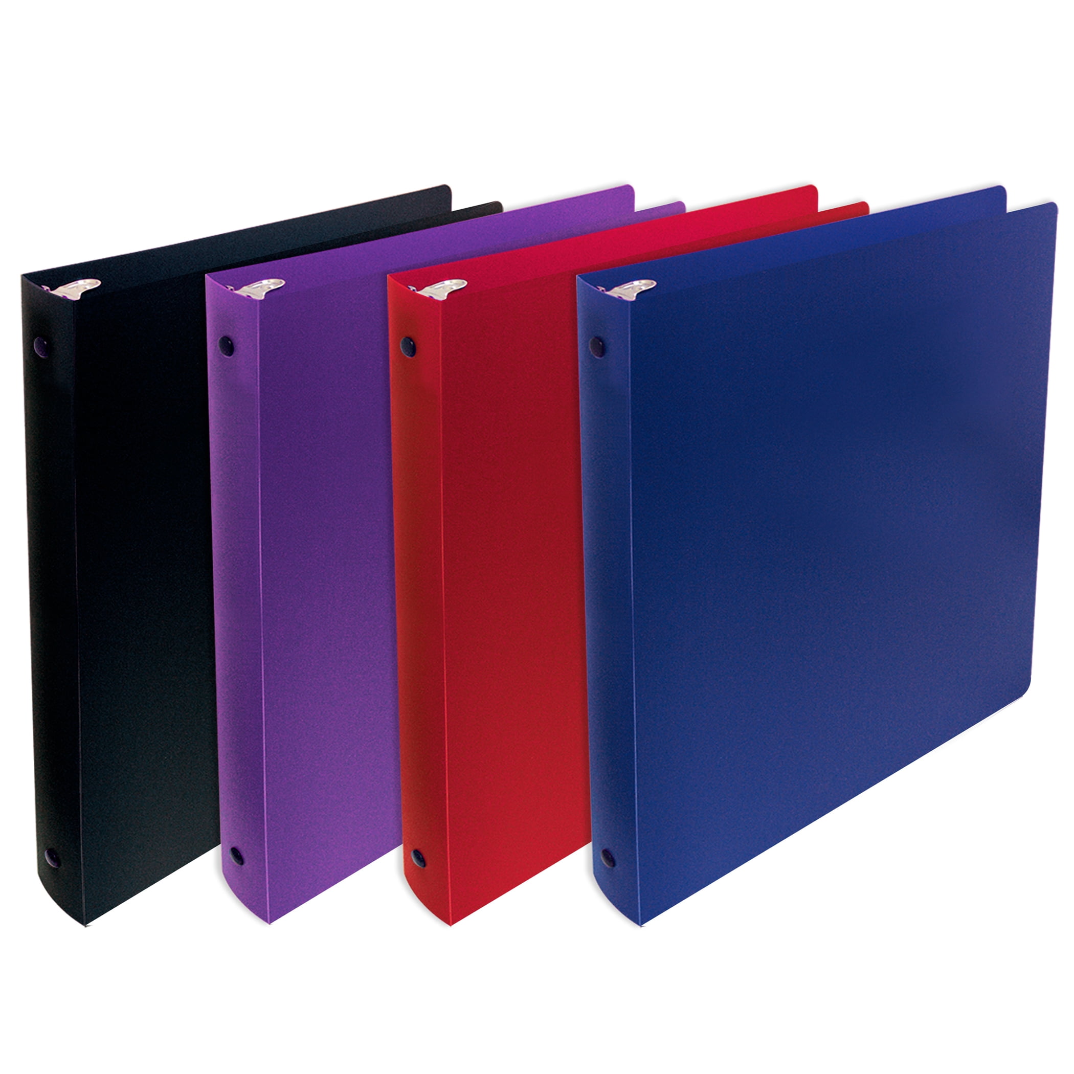 3 Ring Poly Binder with Pocket, 1 Inch, Letter Size, 4 Pack-Red, Blue, Purple, and Black, By Better Office Products