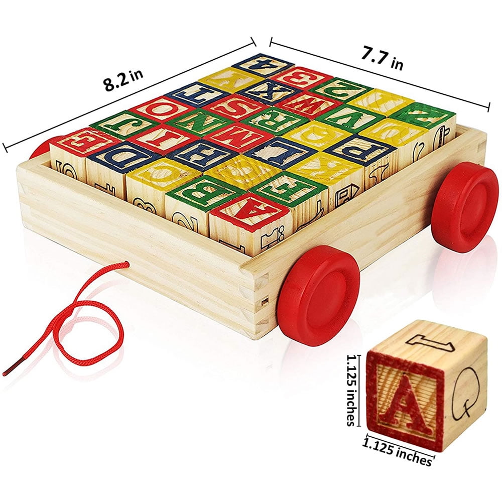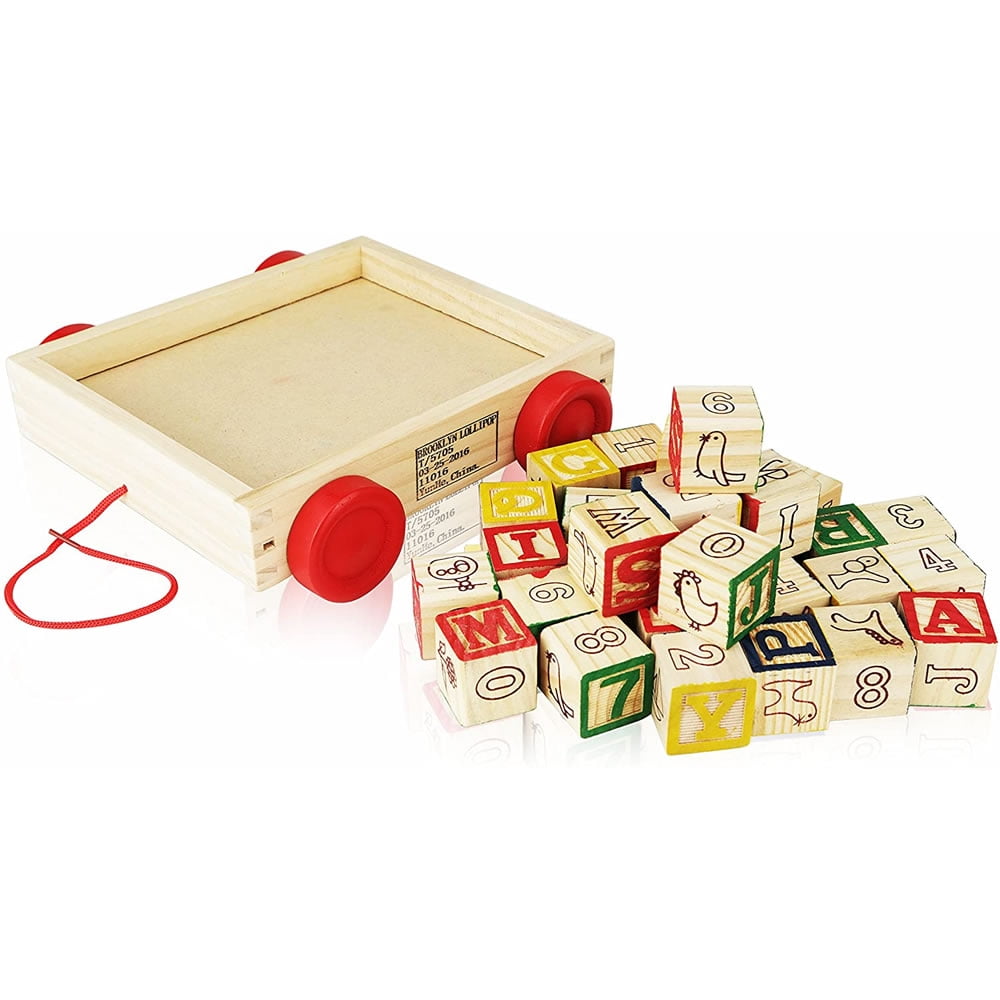 Alphabet blocks are as crucial to a healthy childhood as food, love, and diapers. How else would Mom take that embarrassing photo of you slobberchewing on the letter E? This awesome 30pc wooden ABC Block Wagon set makes childhood magical. Each 1.25" cube features letters, numbers, and symbols painted in bright colors on each face. The entire set fits into a cool rolling wooden wagon, so it’s easy to tote the blocks from room to room. This classic set is a great learning tool, helping kids not only learn letters and numbers, but spacial awareness and coordination too. Give your child the gift of knowledge, or at least its building blocks Pick up your ABC Block Wagon Set today recommended for ages 2+