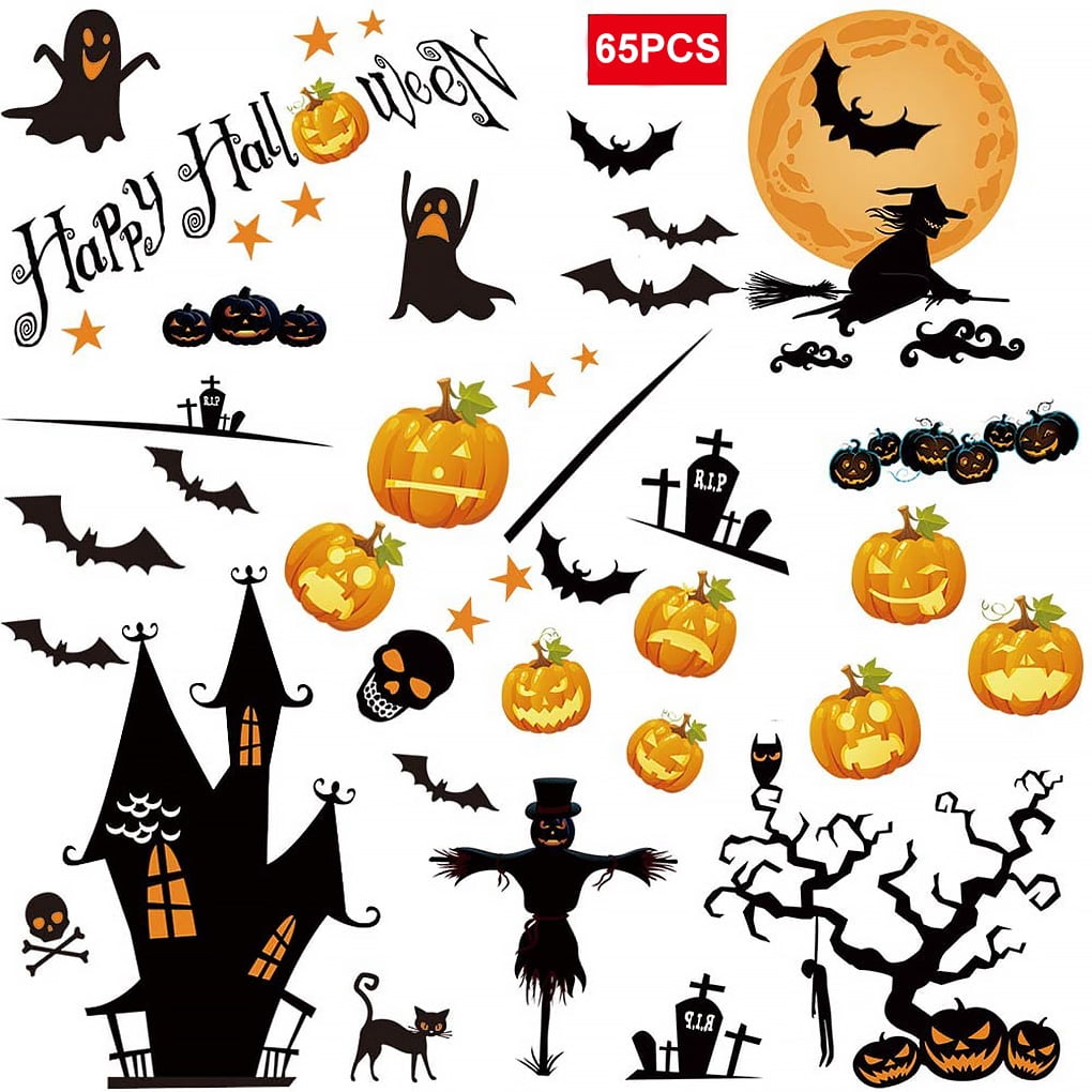 65pcs Halloween Pumpkin Witch Window Clings Stickers Glass Wall Door Decals Party Decorations