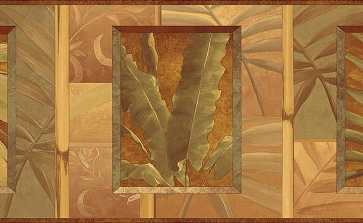 tropical leaves wallpaper border nl57003bBook Name : Natural Living by Kathy Ireland Pattern # : NL57003b Border Width : 8 inches wide by 15 feet long Design Repeat : 24 inch pattern repeat Prepasted : Yes
