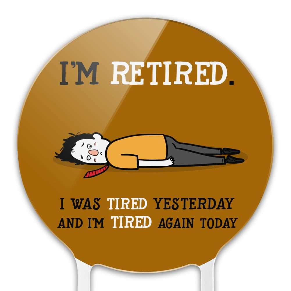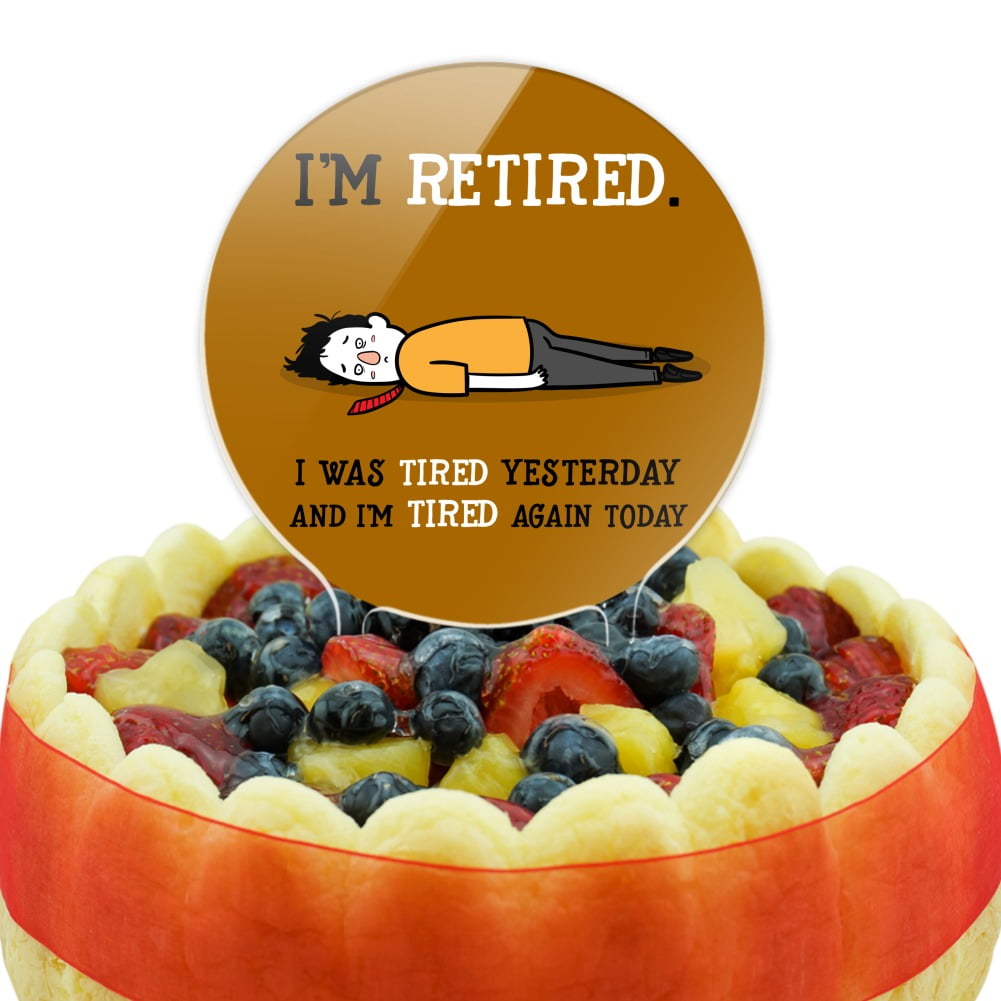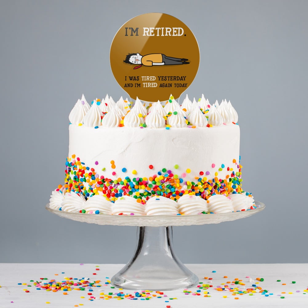 - CAKE TOPPER – I’m Retired Tired and Tired Again Funny Cake topper will help you show off your amazing work! Bring the finishing touch to your culinary creation with this cake topper.