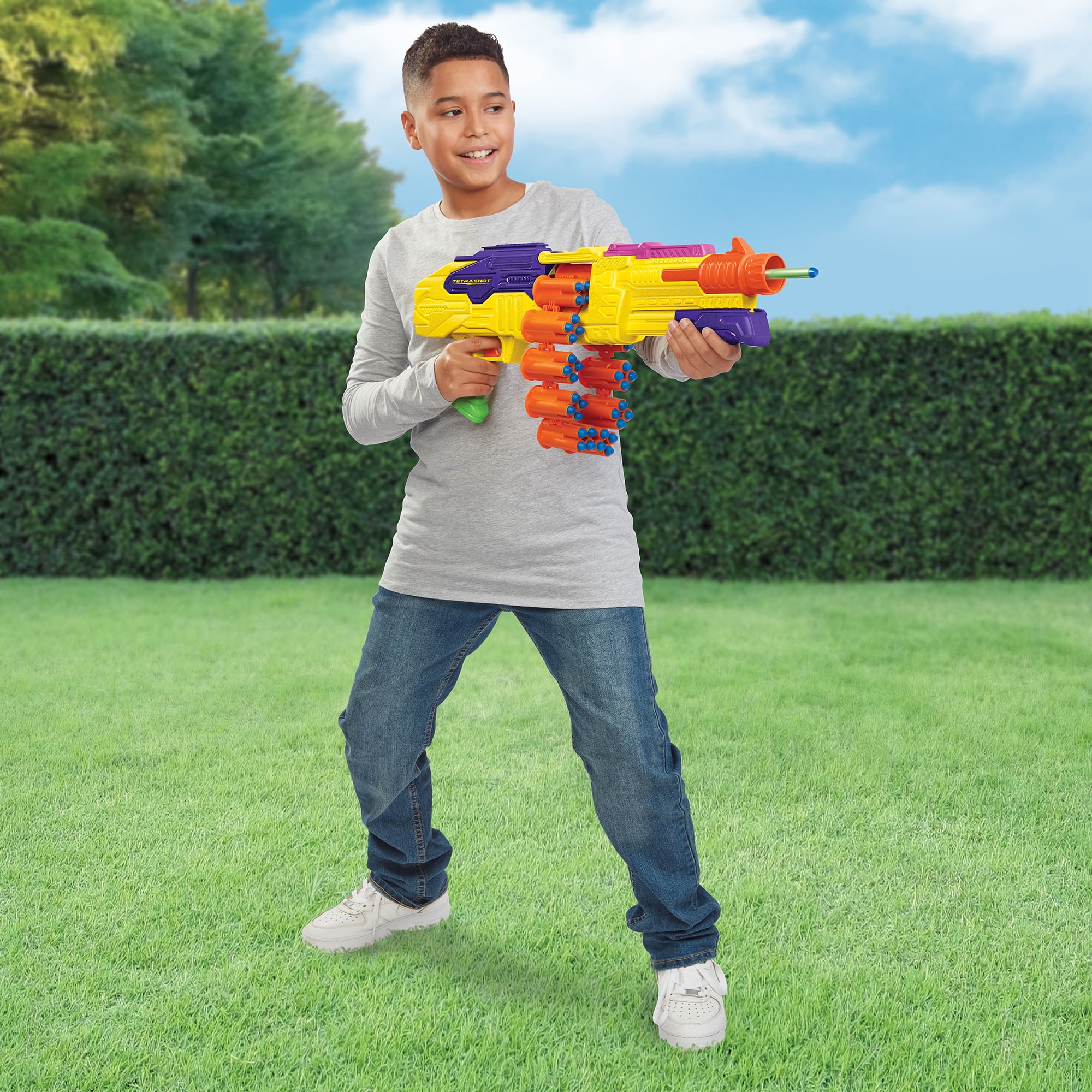 - Shoots darts up to 90 feet