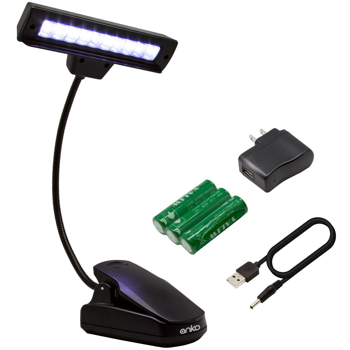 ANKO LED Music/Piano Stand Lamp,360 Degrees Round White LEDS Portable Desk Reading Lamp With Battery, USB Cable And AC Adapter, Suit For Home, Office, Craft Work, Reading At Night. (10 LED+1 BUTTON)