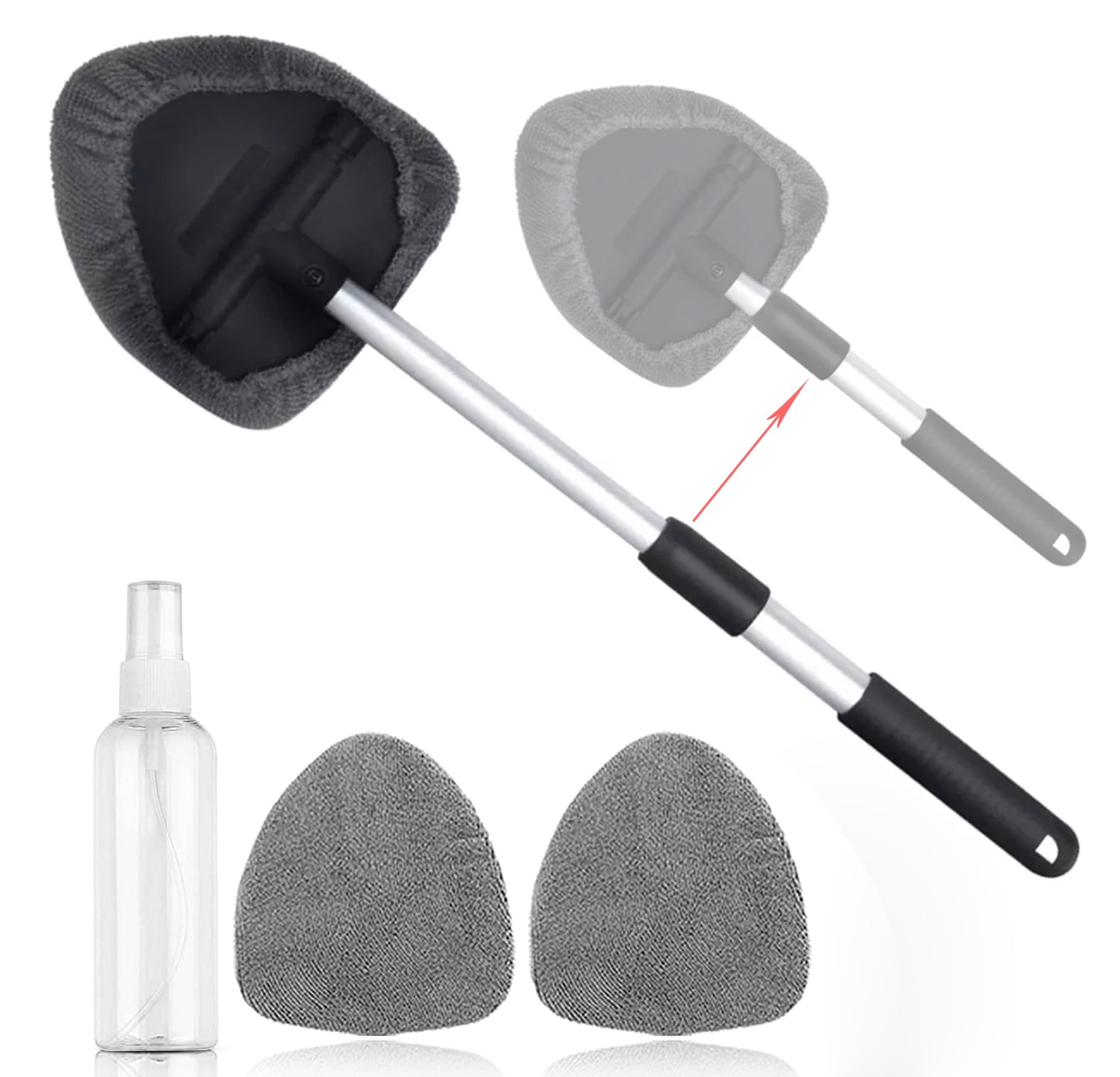 Anpro Car Window Cleaner, Microfiber Car Windshield Cleaning Tool with Extendable Handle and Washable Reusable Cloth Pad Head Auto Interior Exterior Glass Wiper Kits