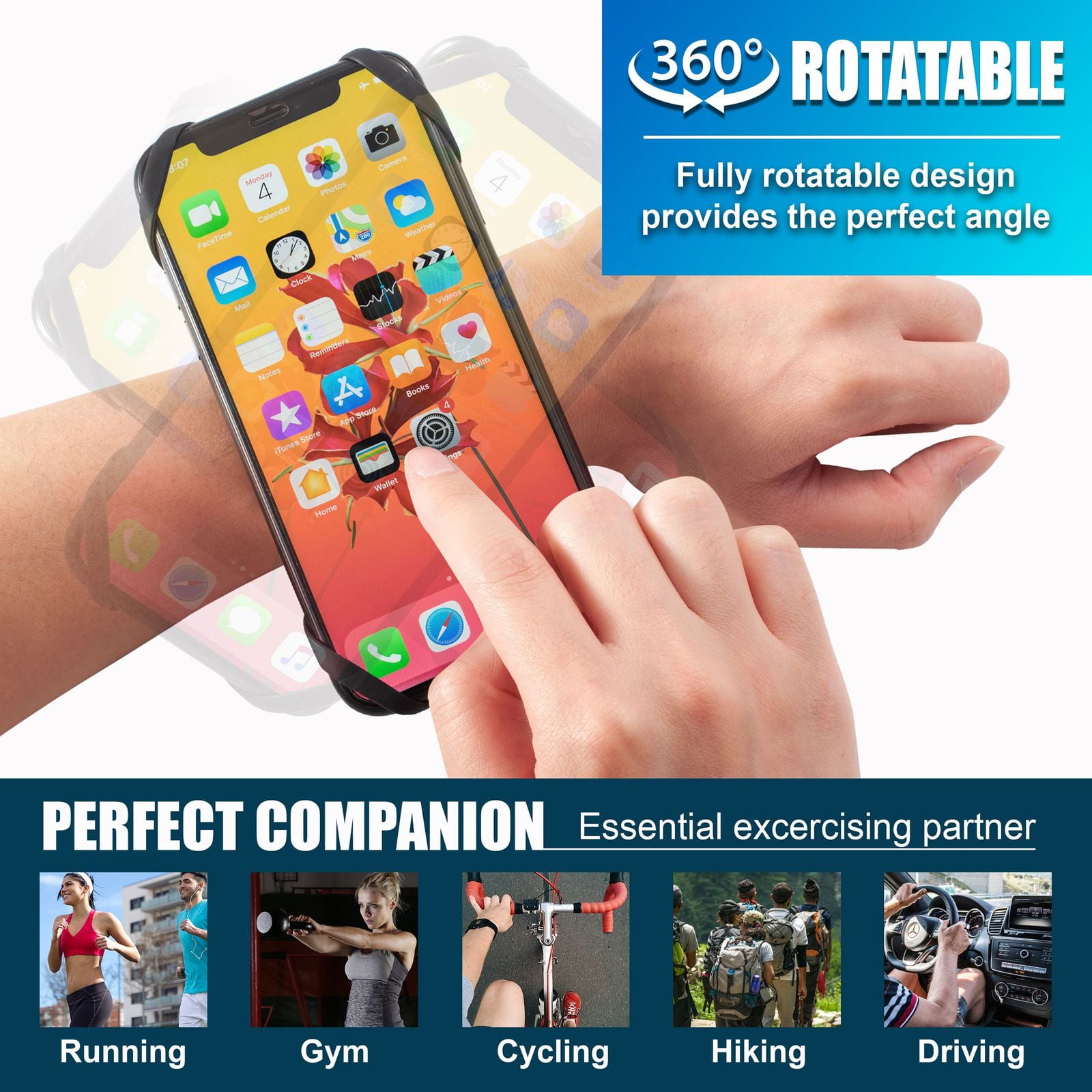 - EXERCISE COMPANION: Access your phone easily by mounting it on your wrist or arm. Essential for anyone who loves to exercise. Perfect for cycling, running, gym work, hiking and driving