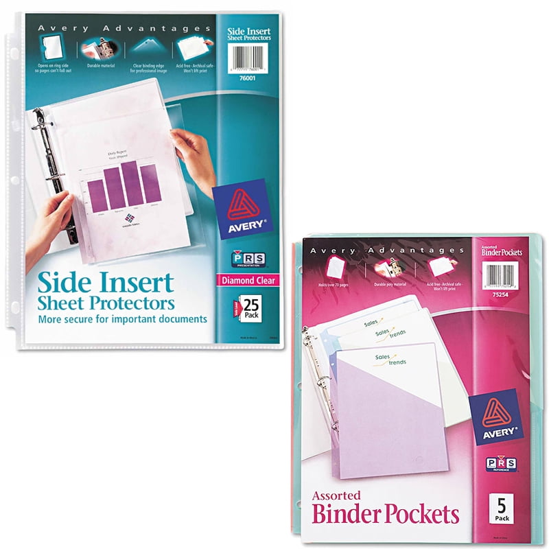 Avery Secure Side-Load Sheet Protectors, Heavy Gauge, Letter, Diamond Clear, 25-Pack and Avery Ring Binder Polypropylene Pockets, 8-1/2 x 11, 5/Pack Bundle