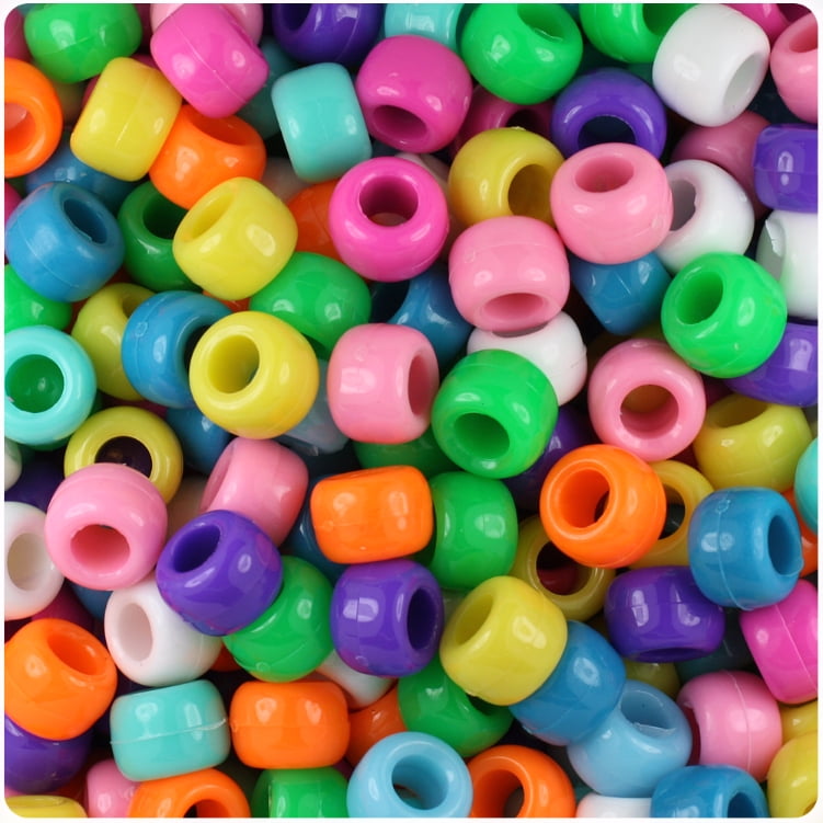 These standard barrel pony beads are ideal for making necklaces, bracelets, key chain and other jewelry projects, as well hair braiding, decorating pacifier clips, jazzing up backpacks and many other craft ideals. Made in the USA, they meet all required safety standards. These beads measure 6mm high and 9mm wide, with a 4mm hole running vertically down the middle of the beads and sold in packs of approx. 500 beads.