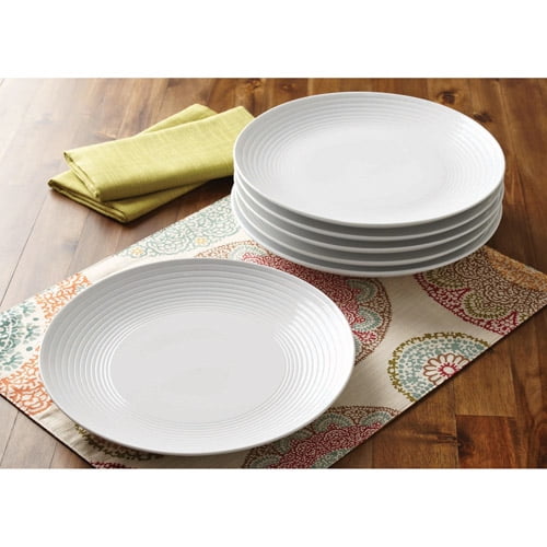 Better Homes & Gardens Round Ribbed Dinner Plates, White, Set of 6