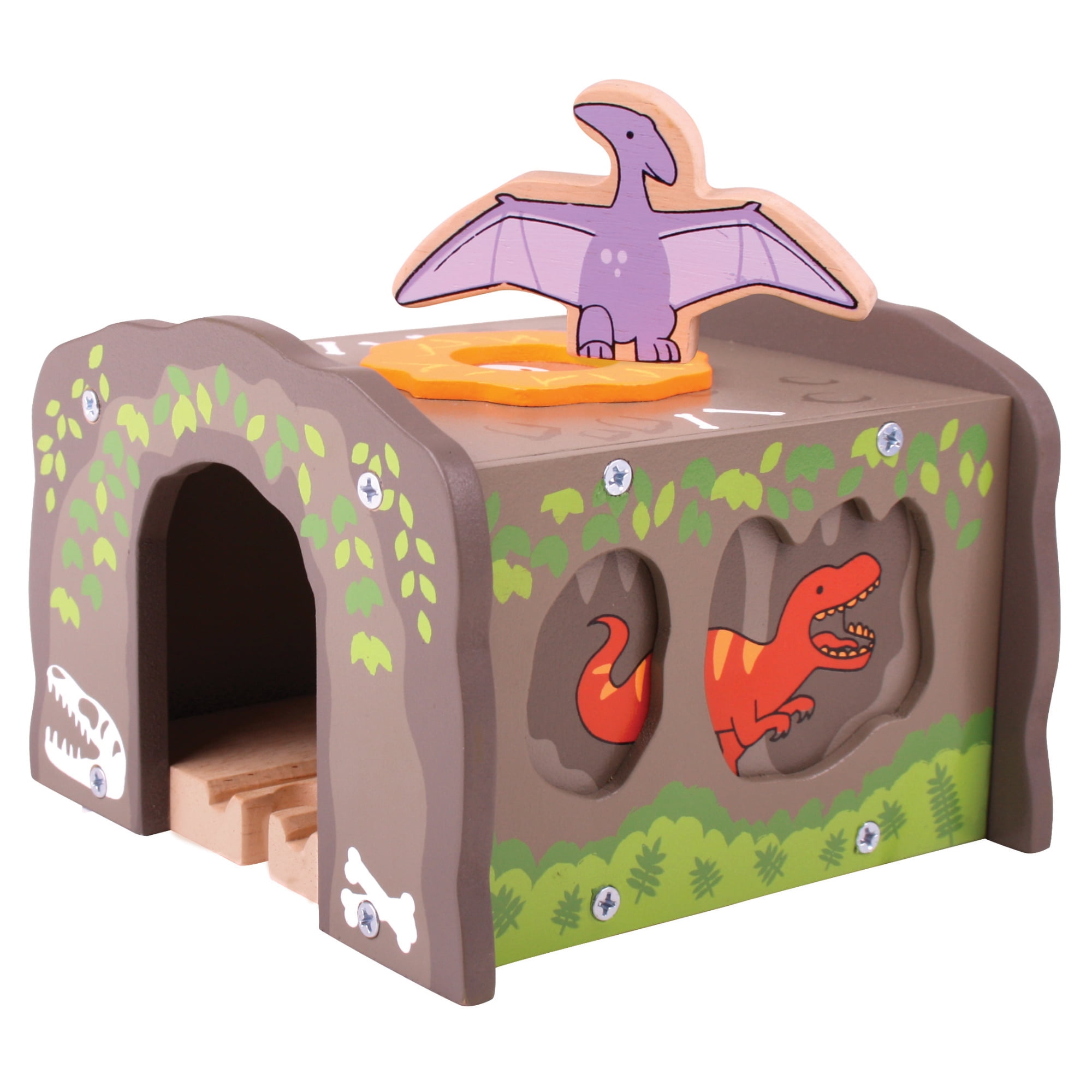 The Dino Range T-Rex Tunnel brings youngsters into an exciting fantasy world as they dare to pass their trains through the tunnel and avoid the fierce T-Rex and Pterodactyl guarding her nest. Most other major wooden railway brands are compatible with Bigjigs Rail. Made from high quality, responsibly sourced materials. Conforms to current safety standards. Age 3+ years. Consists of 2 play pieces. Height: 3.74", Length: 5.51", Width: 5.12". WARNING: CHOKING HAZARD — Small parts. Not for children under 3 yrs.