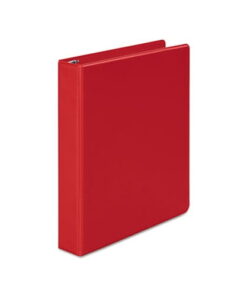Basic round-ring binder features two triggers on the ring mechanism that provide easy access to your documents. Back-mounted metal rings allow pages to lie flat. 1-1/2quot; capacity holds up to 350 sheets. Clear pockets on the inside covers offer extra document storage with a 30-sheet capacity for each pocket. Design also features a sturdy chipboard core and exposed rivets. Three-ring binder is made of PVC-free polypropylene.