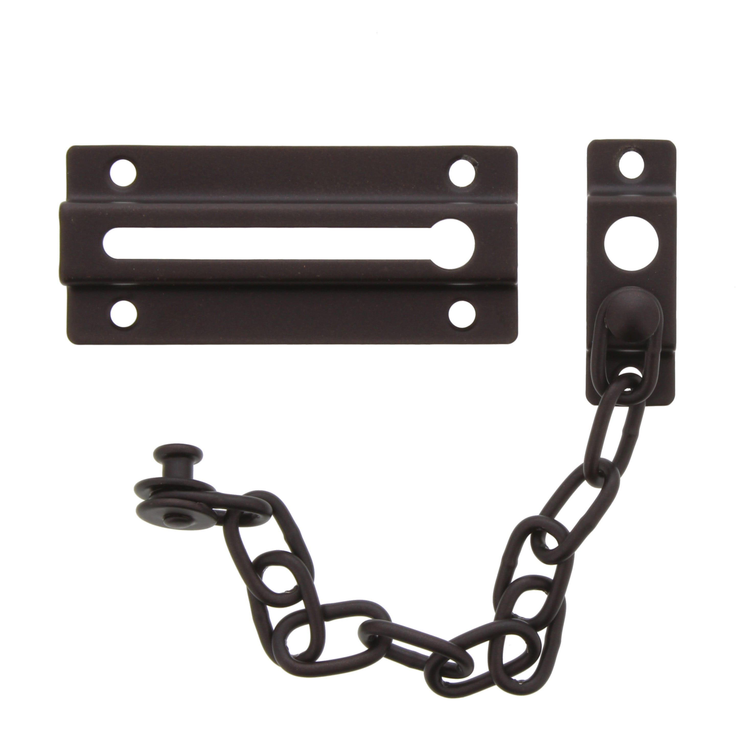 Use the Bulldog Hardware Chain Door Guard to see who is outside without fully opening the door. A chain lock allows the door to be opened slightly to greet someone while the chain keeps the door partially closed. This privacy lock is designed for viewing and ventilation purposes, so it is often used with other types of locks, such as deadbolts, to secure the door. The chain door guard consists of a small chain that is mounted to the door frame and then attaches to a track on the door for locking. The door will need to be fully closed for the chain to release and the door to unlock. It can be used on swing-in wood and metal doors. Installation instructions can be found on the package and it is recommended the lock set be mounted out of children’s reach to help prevent unwanted opening. These locks come in a variety of finishes to complement your existing home hardware.