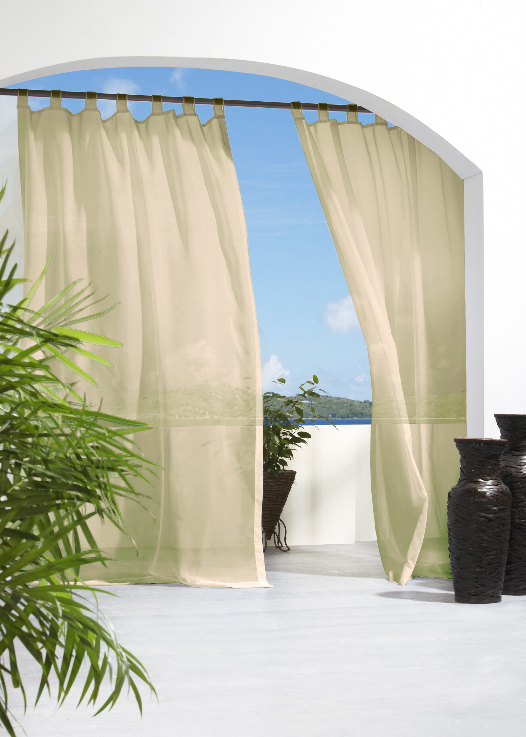 These Velcro Tab panels are so easy to hang anywhere, porch, gazebo, or outdoor balcony. Their light airy look brighten and soften the outdoor environment Features: Finish: Mushroom Beige. Materials: 100% polyester 8 Velcro tabs Care Instruction: Machine Wash Cold No Chlorine Bleach, Line Dry Specifications: Overall Product Dimensions: 96" H x 54" W Product Weight: 1 lbs 0.25" Side Hem, 0.25" Bottom Hem