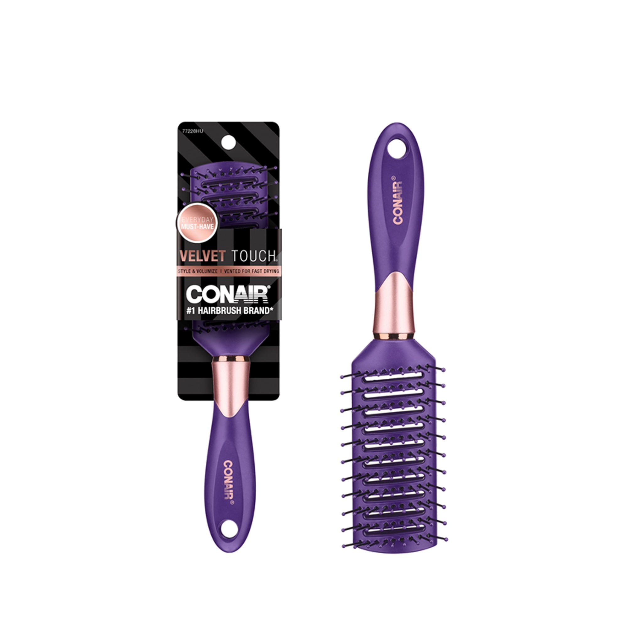 Conair Velvet Touch Vent Hairbrush with Nylon Bristles and Soft-Touch Handle for Volume and Lift (Colors Vary), 1ct