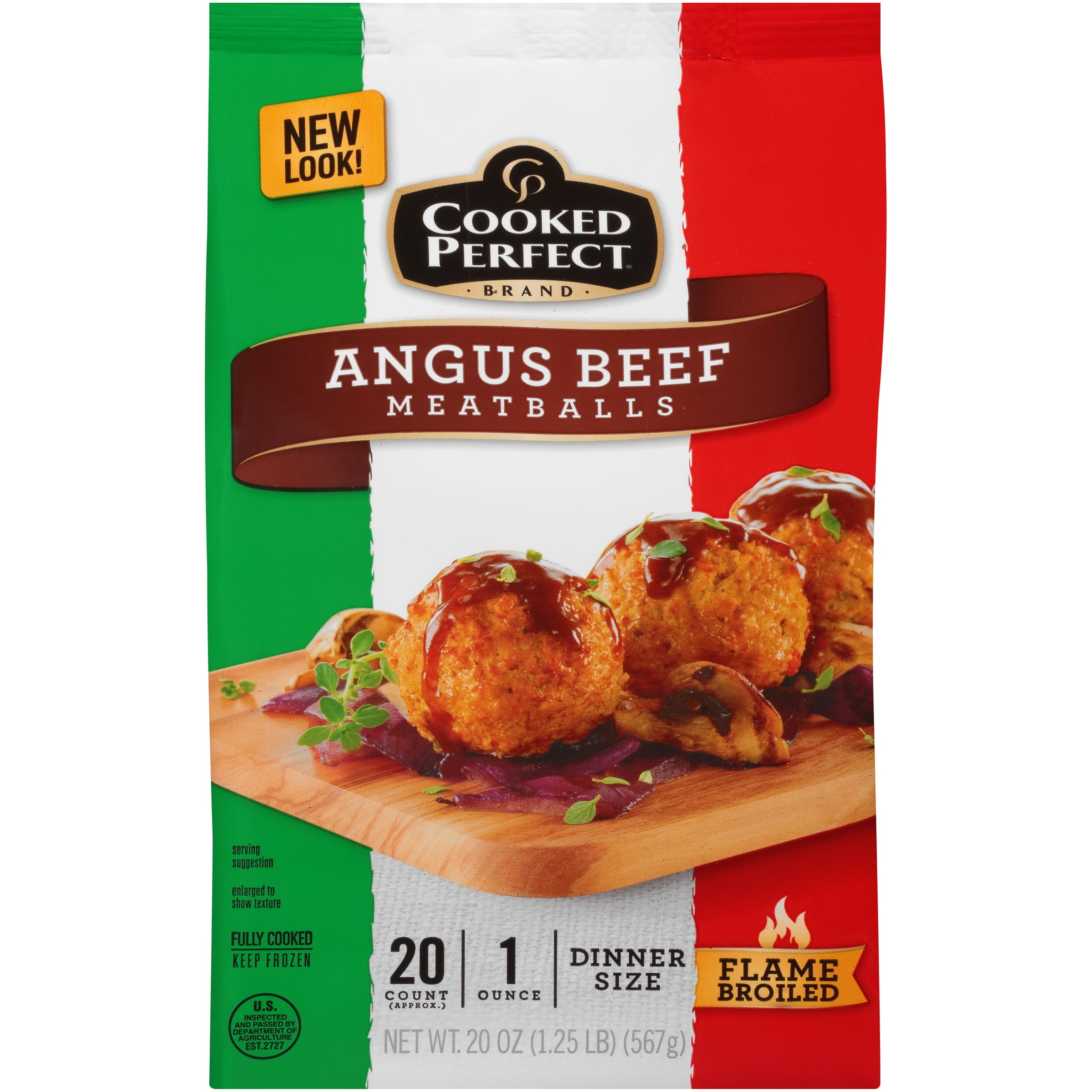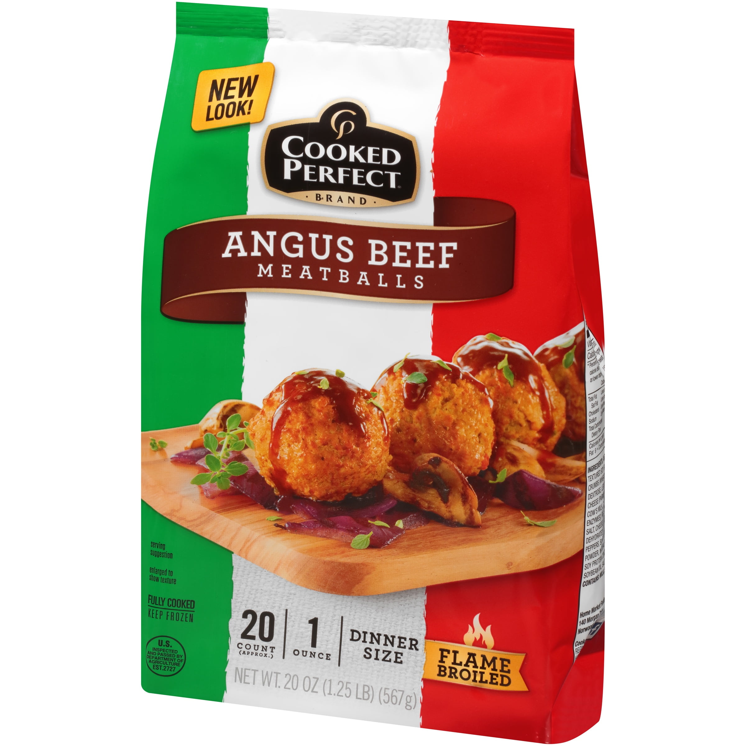 - Fully cooked meatballs have a net wt of 20 oz (1.25 lb) (567g)