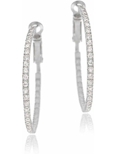 CZ 35mm Sterling Silver Inside-Out Hoop Earrings
