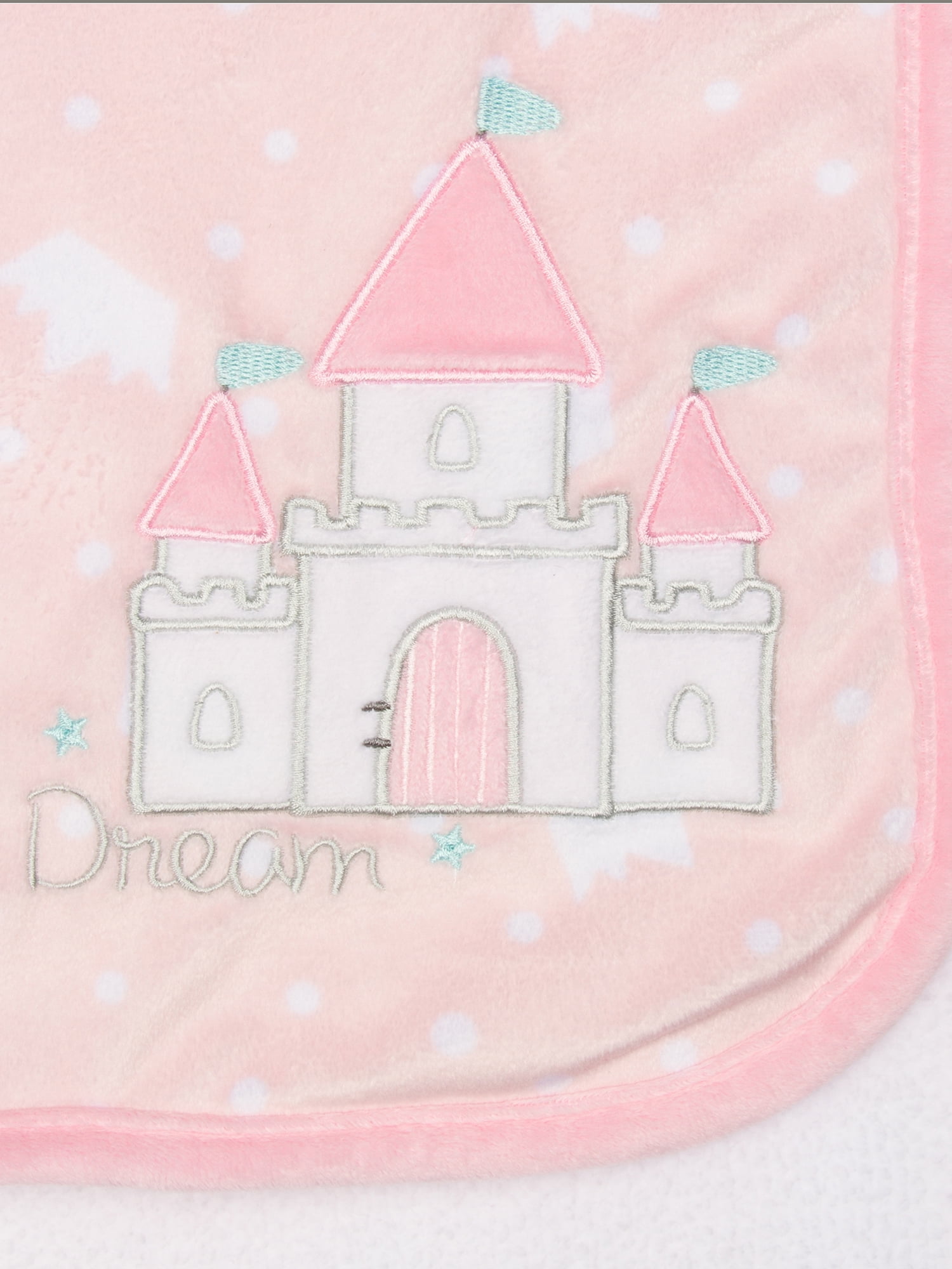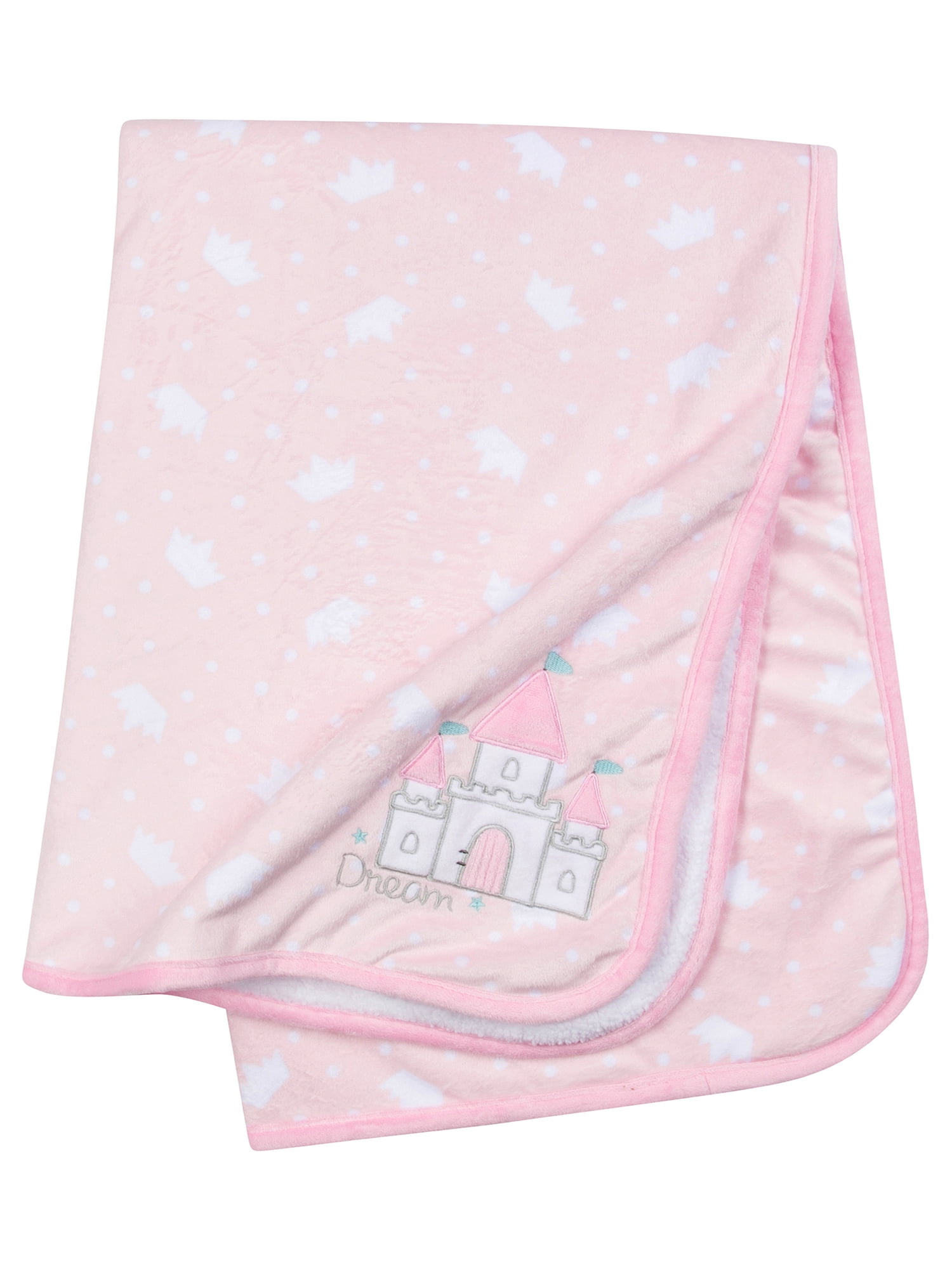 Our plush baby blankets are perfect for snuggly babies and cuddly toddlers! Made with soft poly velboa and fleecy poly micro plush, these blankets are warm and cozy. Our baby blankets are perfect for indoor use, keeping warm in the car, or outside in the stroller. We had our essentials independently certified with STANDARD 100 by OEKO-TEX® so that you don’t have to worry about harmful substances in your baby’s nursery. Pair this sweet blanket with our coordinating crib sheets, milestone blankets, changing pad covers, and flannel baby blankets. Each one is sized at 30” x 40”, the perfect size for cuddling up and keeping your little one cozy and warm. This baby blanket makes a thoughtful and practical baby shower gift that’s sure to be loved. Each one is machine washable and machine dryable for your convenience. This baby girl blanket is pink with princess art.