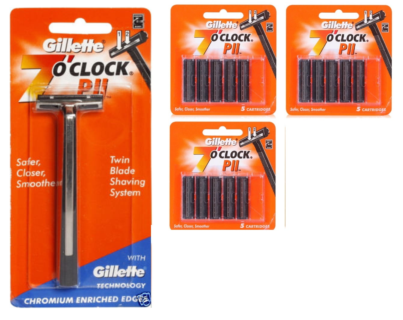 Gillette 7 O’Clock PII Trac II Razor + 7 O’Clock PII 5 ct. Razor Blades (No Lube Strip) (Pack of 3)