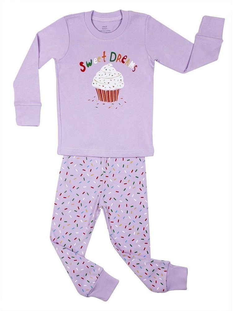 Elowel Girls Purple Cupcake ‘Sweet Dreams’ 2-Pc Pajama Set (Baby, Little & Big Girls)