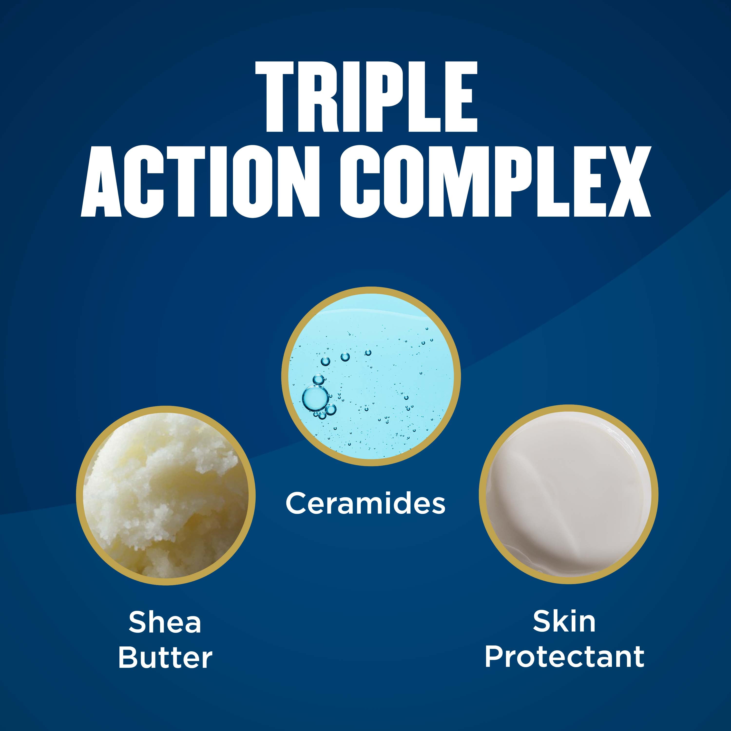 - Made with a triple-action complex of shea butter, ceramides, and white petrolatum for nourishing hydration.