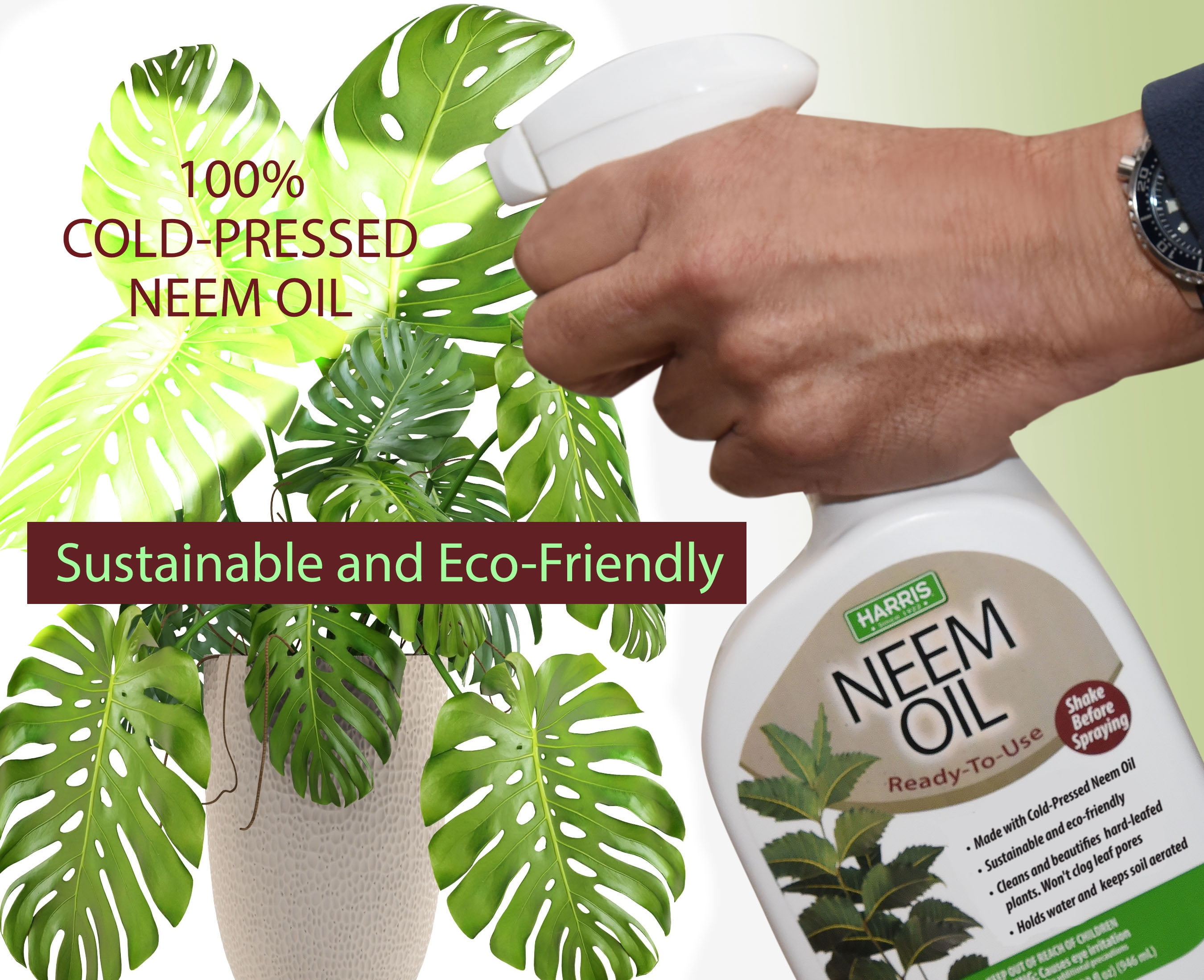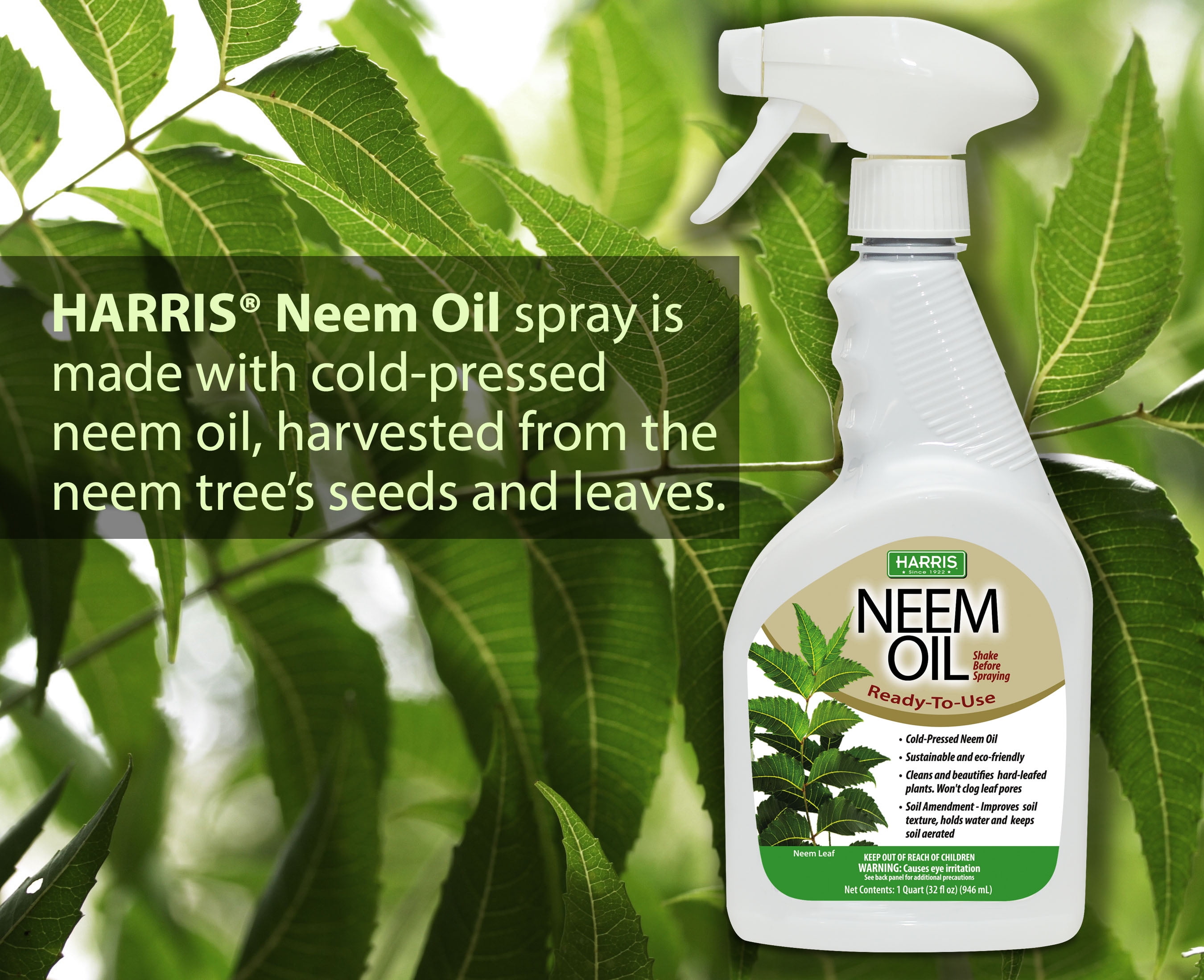 Harris Products Group Ready-to Use Neem Oil Repellent 32 oz. This 100% Cold Pressed and unrefined is all natural and contains no chemicals or additives. Neem oil is recommended by Organic gardeners for use in organic gardening to keep plants looking healthy, natural insecticide, fungicide, and miticide. Great for indoor and outdoor use. Natural and Non Toxic.