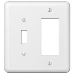 Refresh your interiors with this crisp white single toggle light switch and single rocker combination wall plate from HowPlumb. This replacement combo plate is constructed from durable stamped steel and is coated with a white lacquered finish to prevent cracking. Whether you install this wall plate in your kitchen, bathroom or basement, it is sure to add a polished look to your home. Use the decorator opening for rocker switches, dimmers and GFCI outlet receptacles. It is also compatible with data inserts like coaxial, USB charger, ethernet, phone and HDMI ports.
