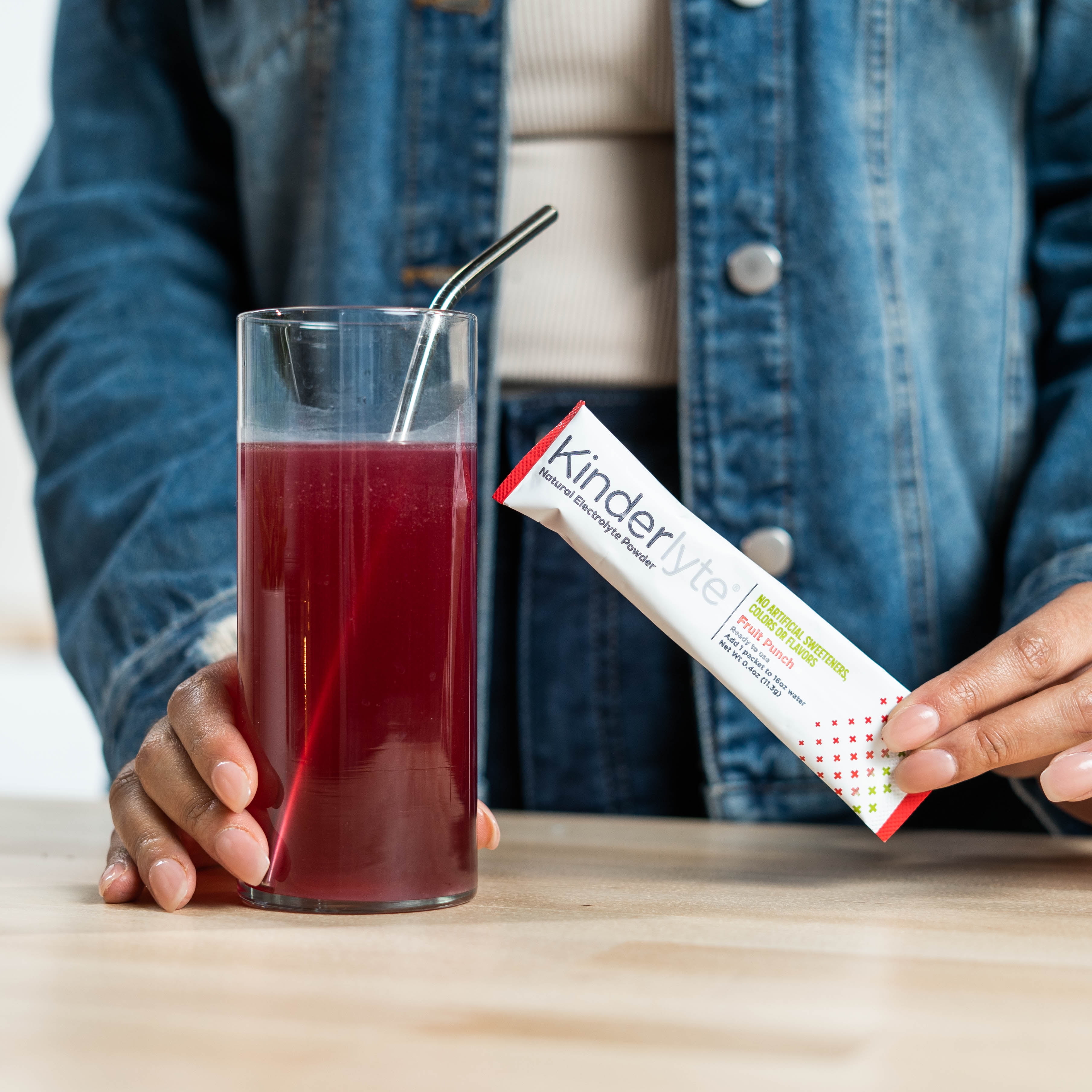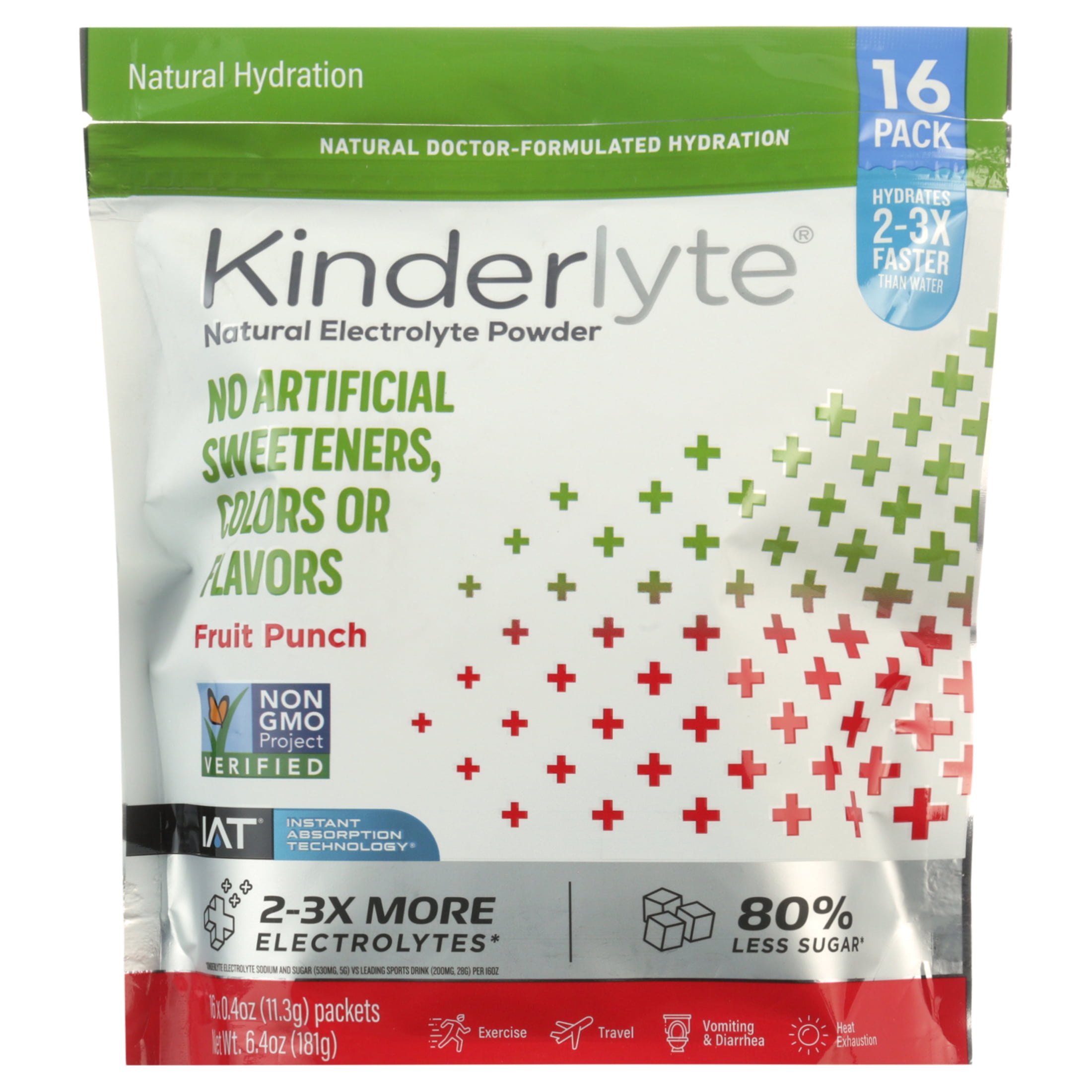 Kinderlyte begins at Kinderfarms, where healthy, natural pediatric oral rehydration starts with clean and effective ingredients! Kinderlyte Natural Electrolyte Powder Drink Mix was developed by doctors and dieticians dedicated to formulating a true Oral Electrolyte Solution (OES) with more electrolytes, potassium, and zinc than the leading brand. Kinderlyte is a non-GMO, vegan, gluten-free, fructose-free alternative to conventional electrolyte solutions. Designed with NO ARTIFICIAL INGREDIENTS like Sucralose, Acesulfame Potassium, Yellow 6, Blue 1, or Red 40, Kinderlyte Electrolyte Powder uses non-GMO sugar instead of fructose for rapid electrolyte delivery when you or your family need it most. Not just for children recovering from illnesses, Kinderlyte’s electrolyte drink packets are excellent at quickly replenishing lost electrolytes, fluids, and zinc after intensive sports or workouts, travel dehydration, and even a late night out. Our electrolyte powders are perfect for on-the-go and available in a wide variety of delicious flavors like Wild Berry and Lemonade.
