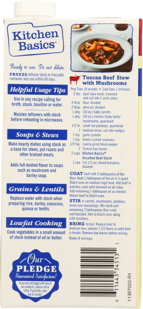 Kitchen Basics® Unsalted Beef Stock. Kitchen Basics Original Unsalted Beef Stock Is Inspired By Homemade, Providing An All-Natural, Flavorful And Healthy Alternative To Broth That Is Certified Heart-Healthy By The American Heart AssociationKitchen Basics Stock Beef Unsalted, 32 Fl Oz