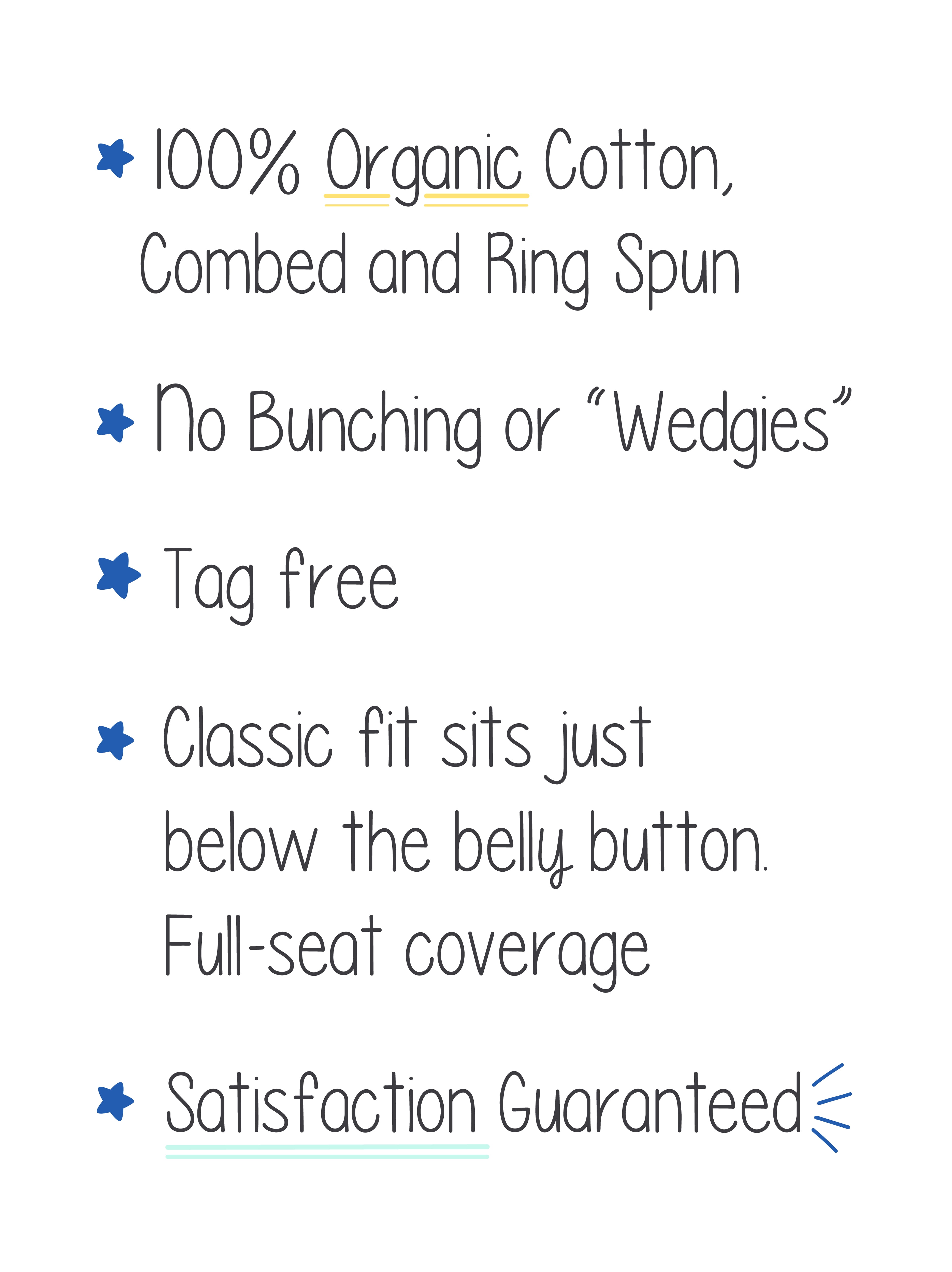 The new standard in Kids Underwear. Your child will love that they’re made of Pure Organic Cotton because it means they’re soft and stretchy. The full elastic waistband makes it easy for them to get dressed and tagless labels won’t itch sensitive skin. Make getting dressed for the day a little more fun. Includes multiple pairs for every day of the week. Trusted by Parents. Loved by Kids.
