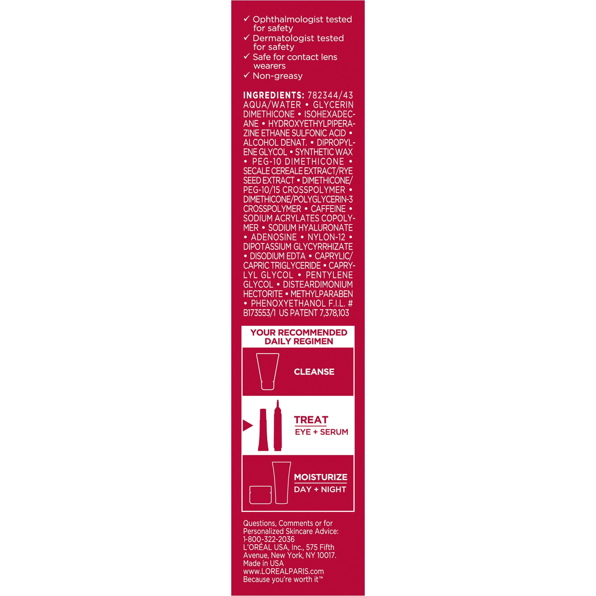 Upgrade your beauty regimen with L’Oréal Paris Revitalift Volume Filler Eye Treatment. It gently stimulates your skin for a youthful glow. Inspired by skin volume research, Revitalift¨ Volume Filler Eye Treatment works to replenish the skin around the eyes and reduce dark circles. This anti-wrinkle eye cream uses the power of hyaluronic acid to reduce the appearance of fine lines and dark circles. It also leaves your skin feeling more hydrated. This treatment melts invisibly into your skin and is lightweight for a more comfortable feel.