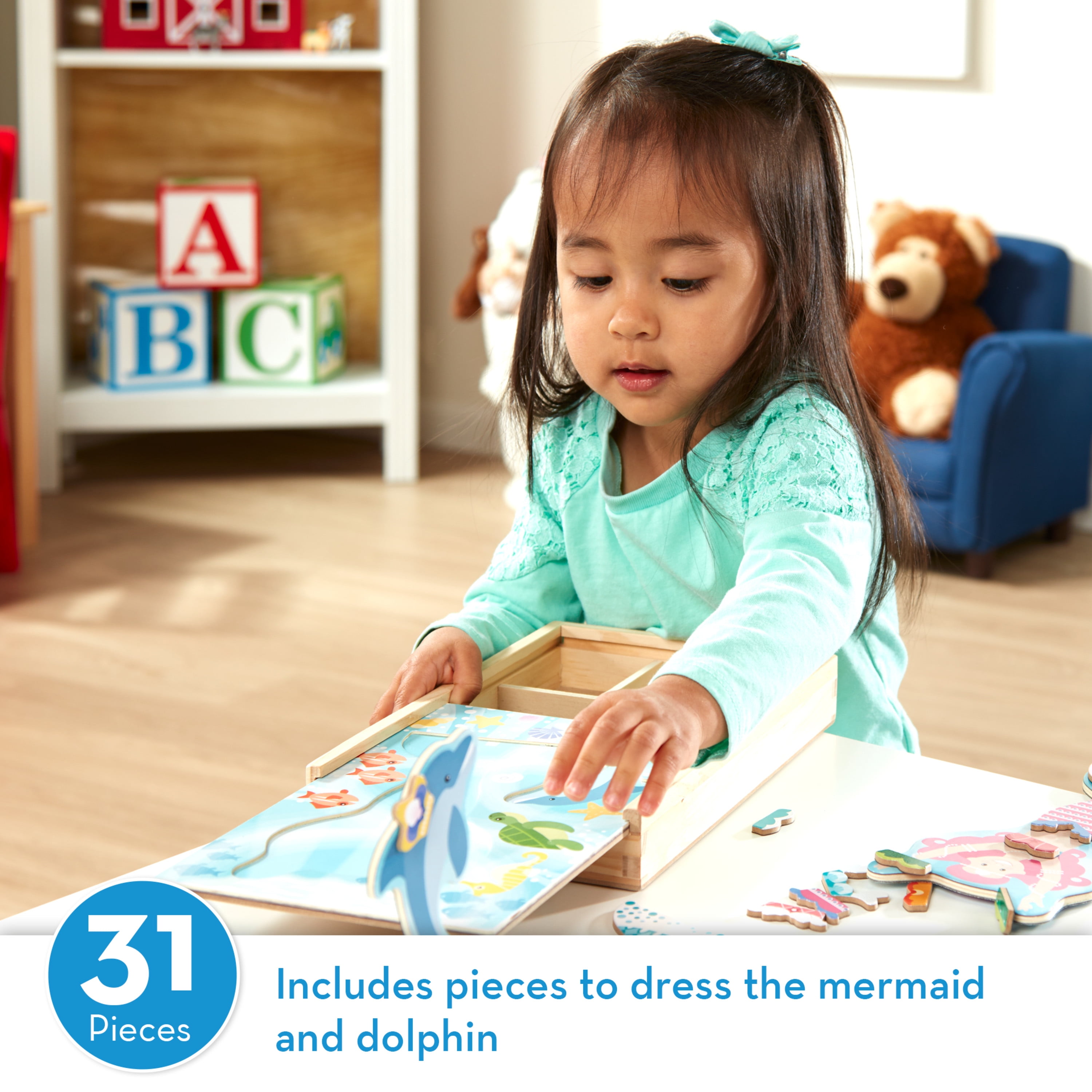 Melissa & Doug Mermaid & Dolphin Magnetic Dress-Up Wooden Dolls Pretend Play Set (35 pcs)