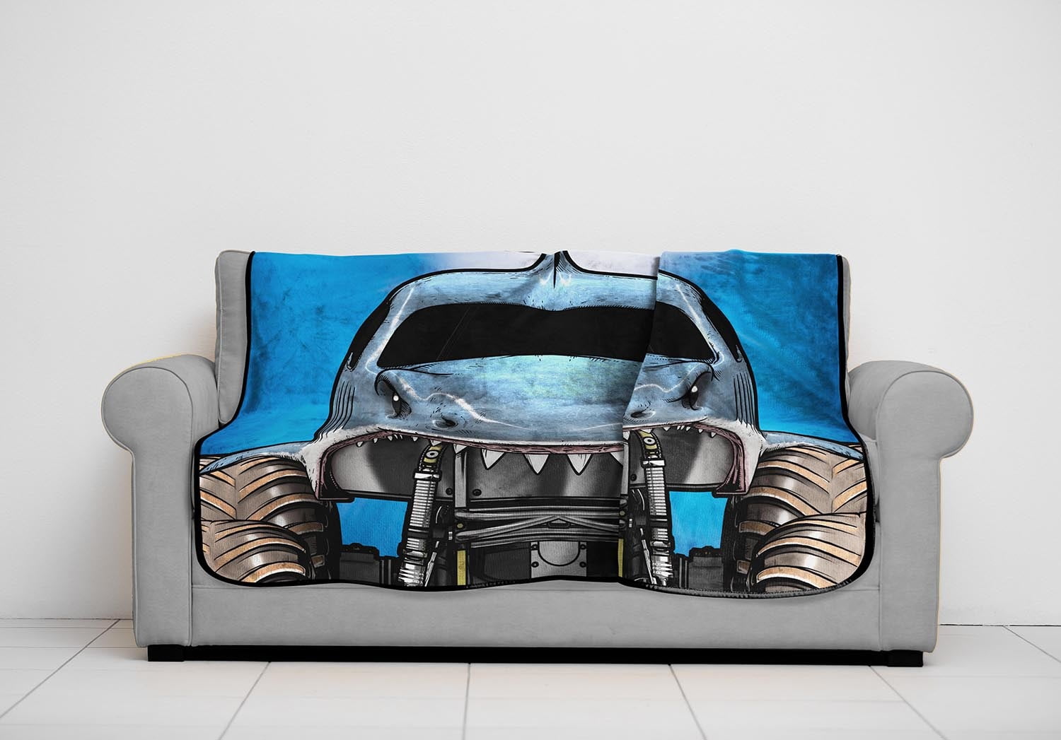 This Monster Jam Sharks with Megalodon and Grave Digger Kids Blanket is the perfect blanket for keeping cozy while lounging around the house or traveling. Made from 100% microfiber. This blanket measuring at 62 x 90 is perfect for you or your child! This blanket is super soft to the touch and machine washable for convenient and easy care. Beautiful and vibrant colors on this blanket pop and are perfect for anyone who loves Monster Jam! This blanket is a great addition to any living space.