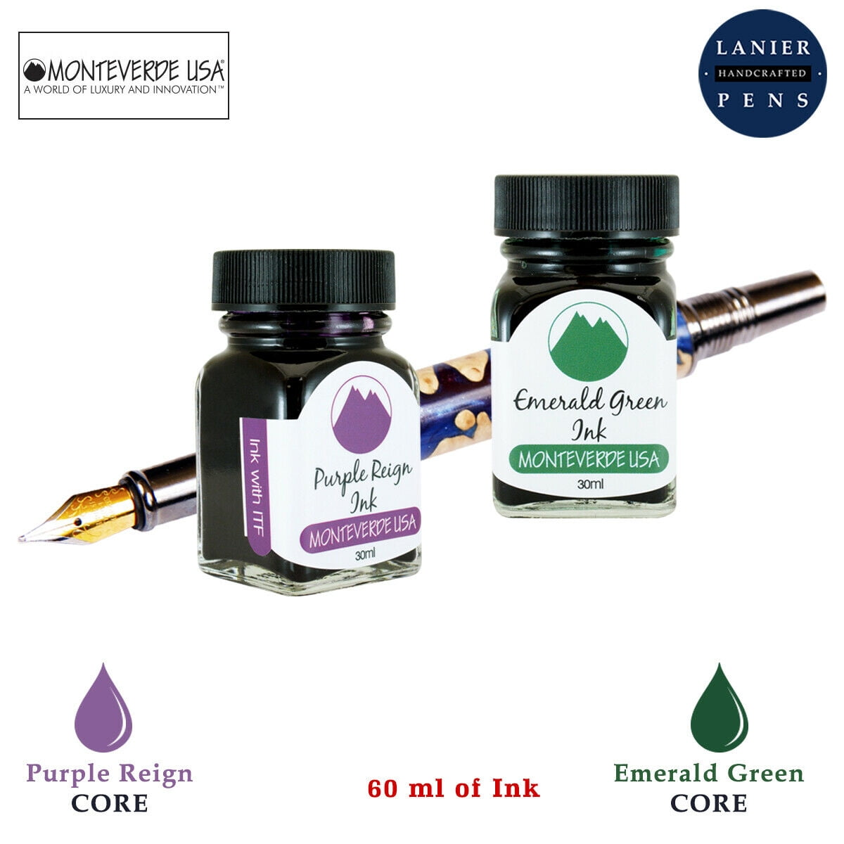 Monteverde 60ml Core Fountain Pen Ink Bottle (30ml Purple Reign Ink Bottle G309PR, 30ml Emerald Green Ink Bottle G309EG)