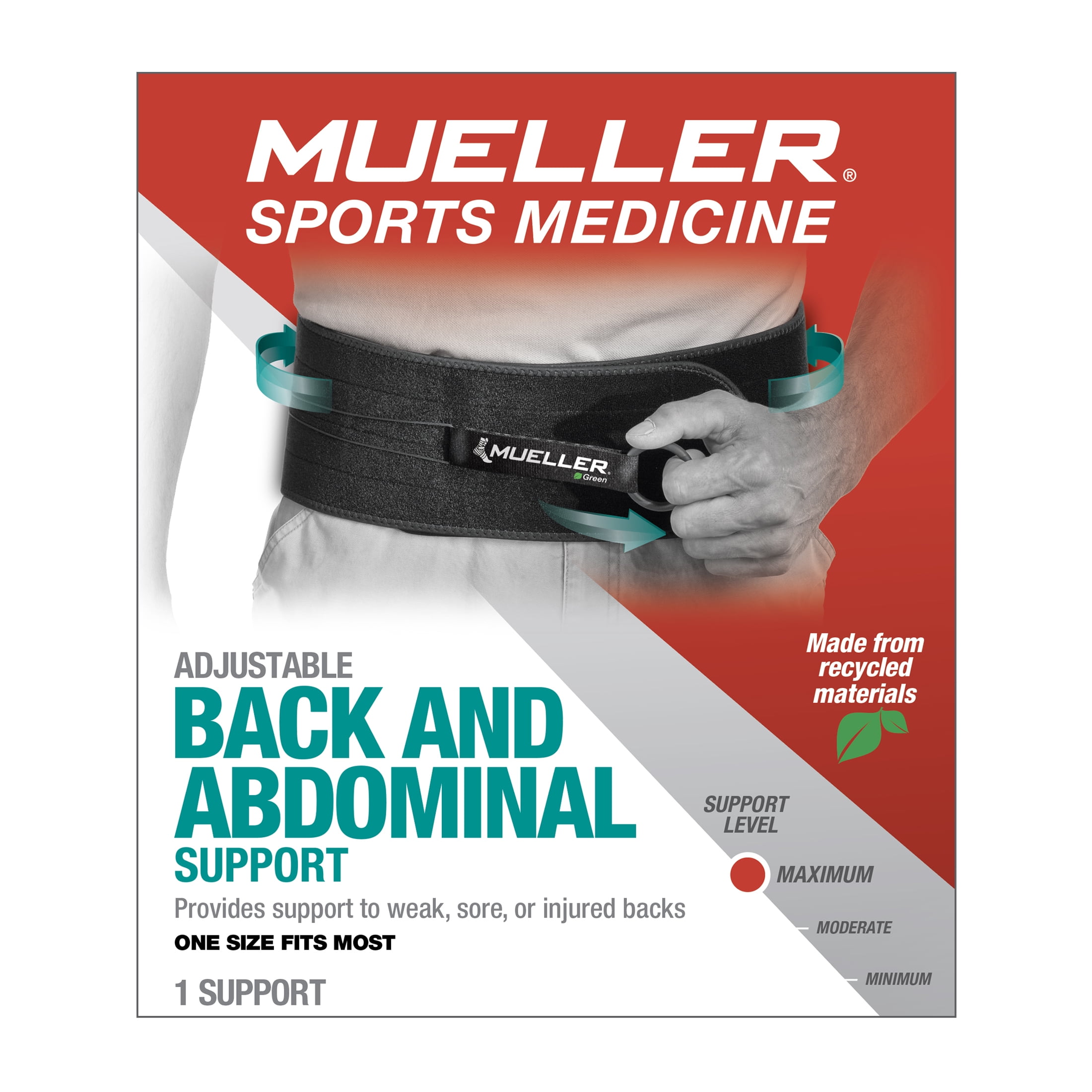 Mueller Green Adjustable Back and Abdominal Support, Black, One Size Fits Most
