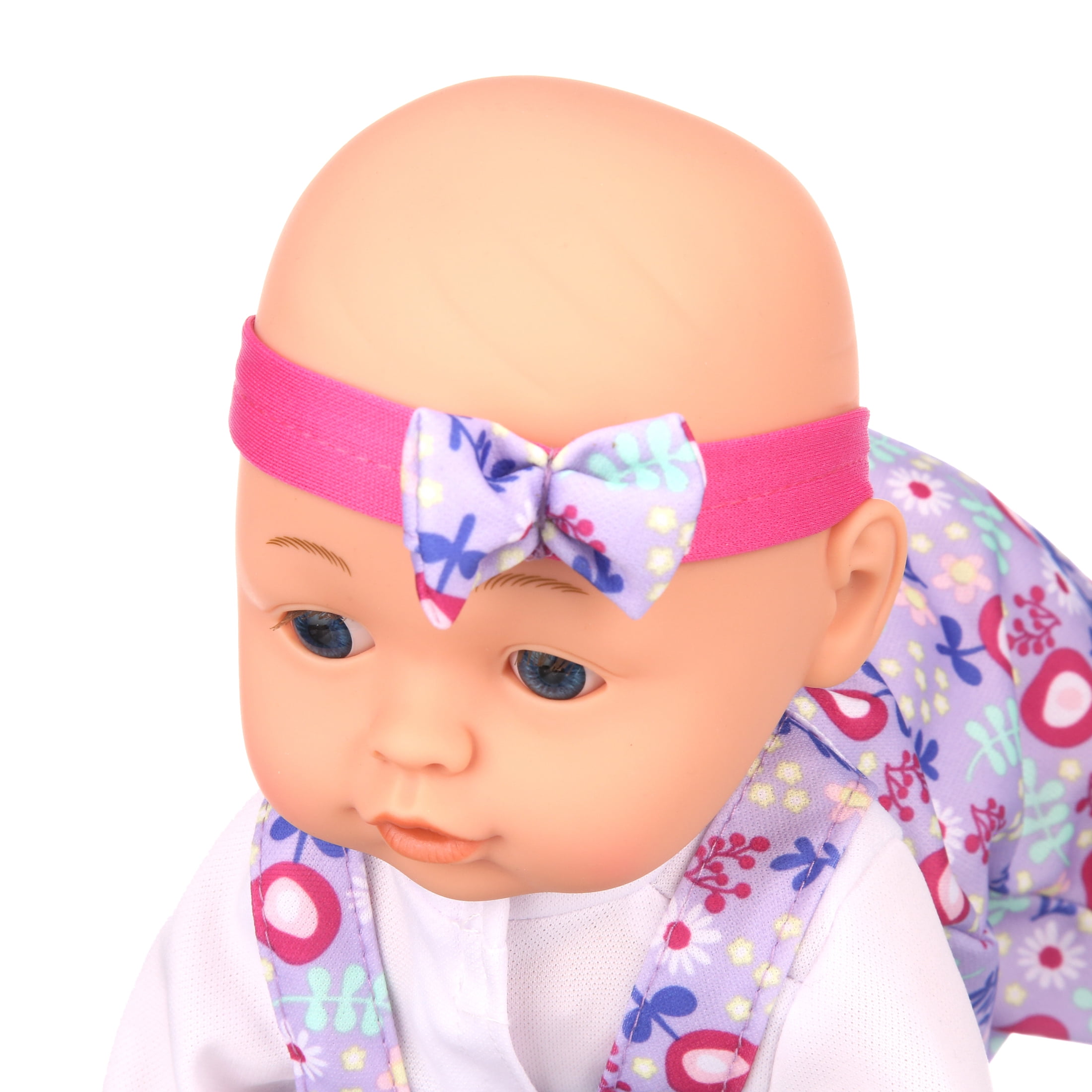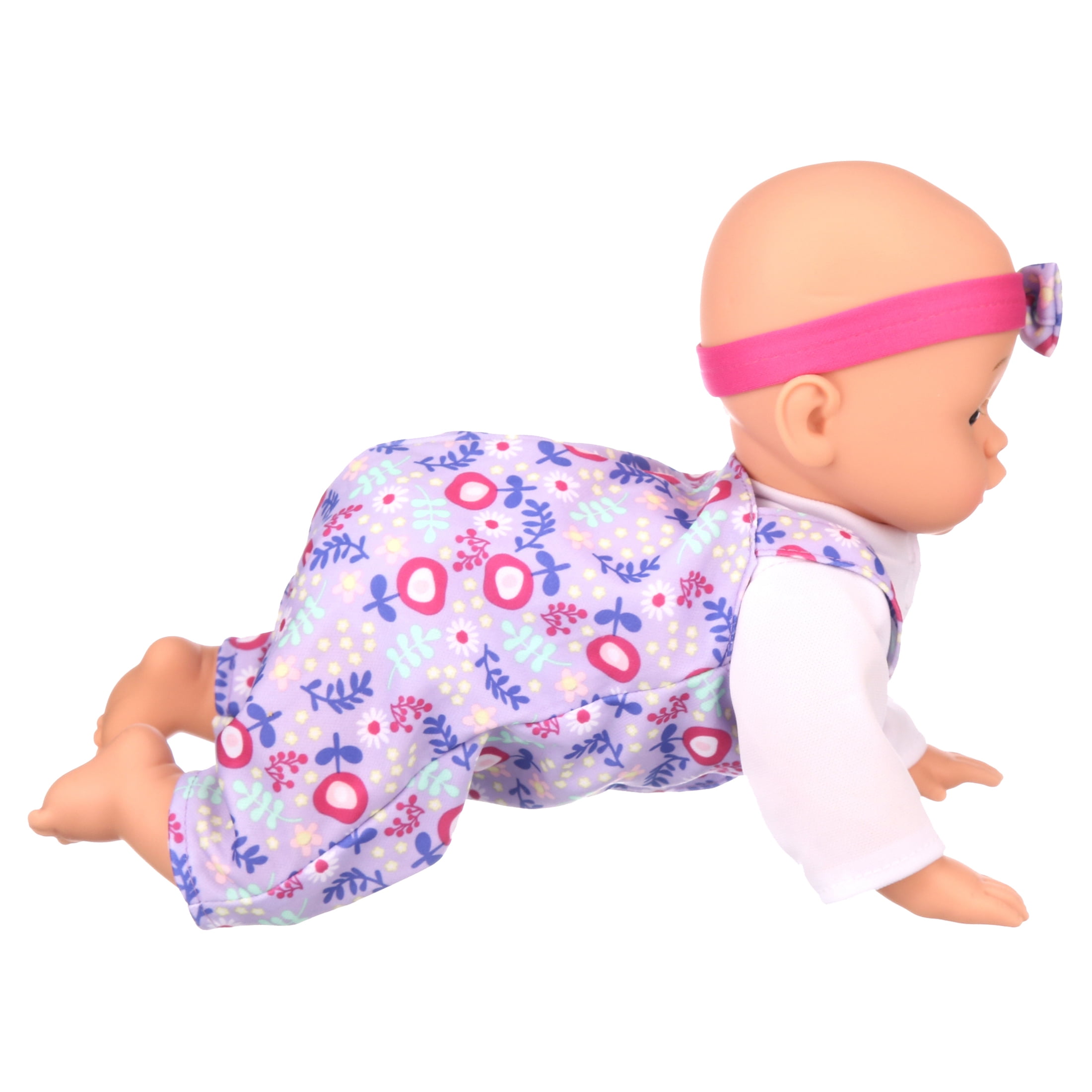 Your child can pretend to watch their favorite little one crawl to them with the My Sweet Love Crawling Baby Toy Set. The toy set comes with an 14" My Sweet Love baby doll in a colorful romper, headband, and a teether. With the three included batteries, the doll can actually crawl on its own across floors, carpets, and other flat surfaces. This fun toy set makes a wonderful present for birthdays, Christmas, Hanukah, other holidays, and more. The set is great for kids aged two and up and is perfect for imaginative play. The My Sweet Love Crawling Baby Toy Set just one part of the entire My Sweet Love toy collection (other items sold separately).