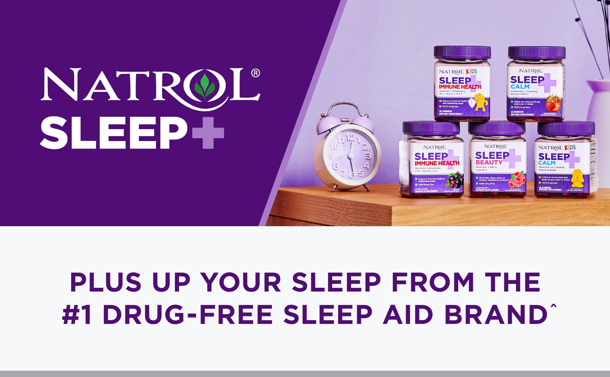 Plus up your sleep. Natrol Sleep+ products provide a range of solutions for restful and revitalizing sleep.† Natrol Sleep+ Immune Health Gummies offer a powerful blend of Melatonin, Elderberry and Vitamin C & D to support immune health and provide a restful night’s sleep.† From the #1 drug-free sleep aid brand^, Sleep+ is 100% drug free and non-habit forming. Natrol sleep aid supplements are made with clean ingredients for restful sleep.† Our Natrol Melatonin products — the #1 selling brand of Melatonin in the U.S.^ have successfully been audited by United States Pharmacopeia (USP) Good Manufacturing Practice (GMP) Quality Systems and has passed the highest quality audit available in the U.S. in the Dietary Supplement Manufacturing category. The USP Audit Certificate lends even more support to our company’s mission to maintain an unwavering focus on excellence in product creation. Additionally, Natrol was recognized as the #1 melatonin brand for consumer satisfaction according to ConsumerLab.com’s Survey of Supplement Users for 2022.†† Natrol continues to create quality, innovative products that deliver positive health outcomes to help enhance everyone’s quality of life.
