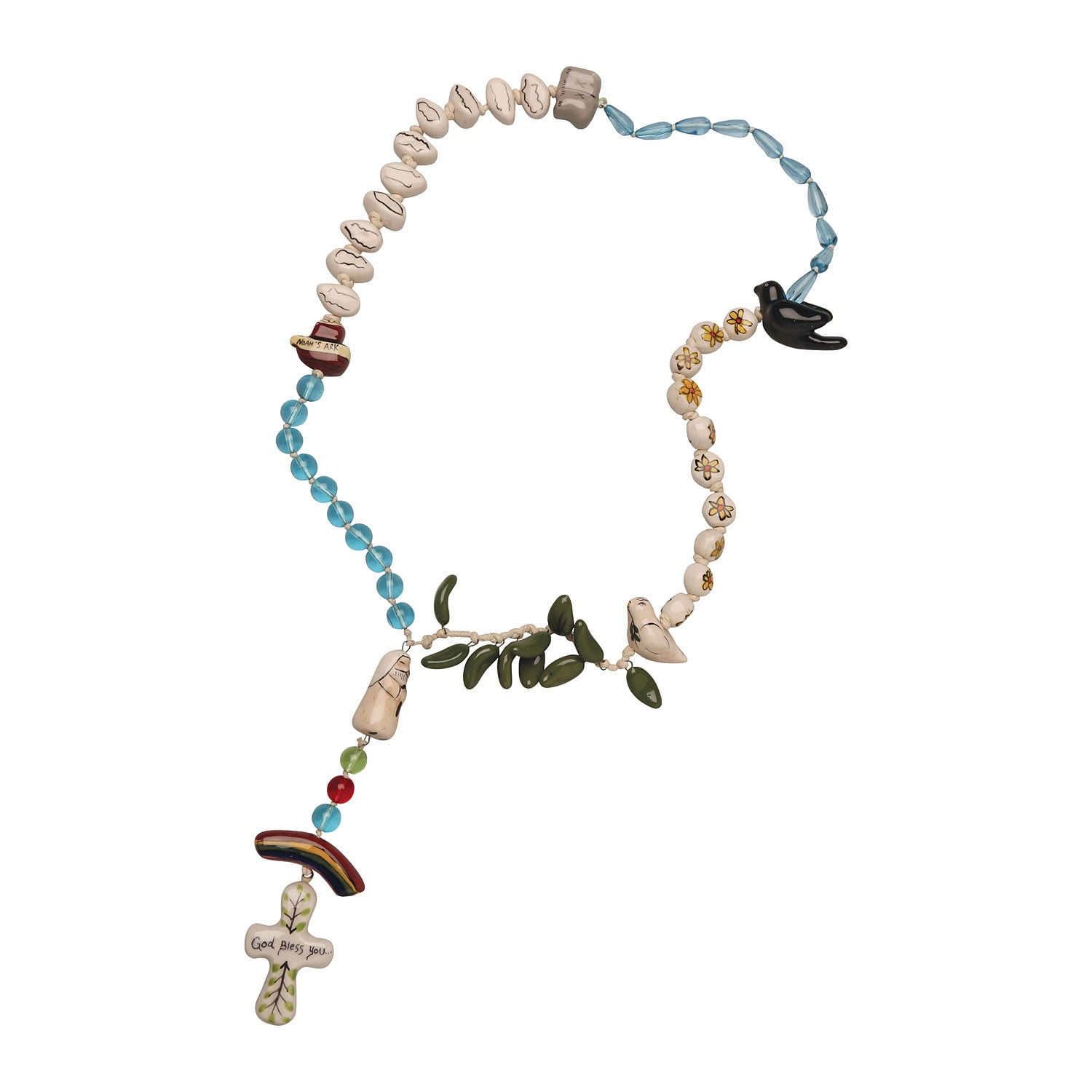 Noah’s Ark Rosary – Hand Painted Ceramic and Glass Beads – 20′ Long