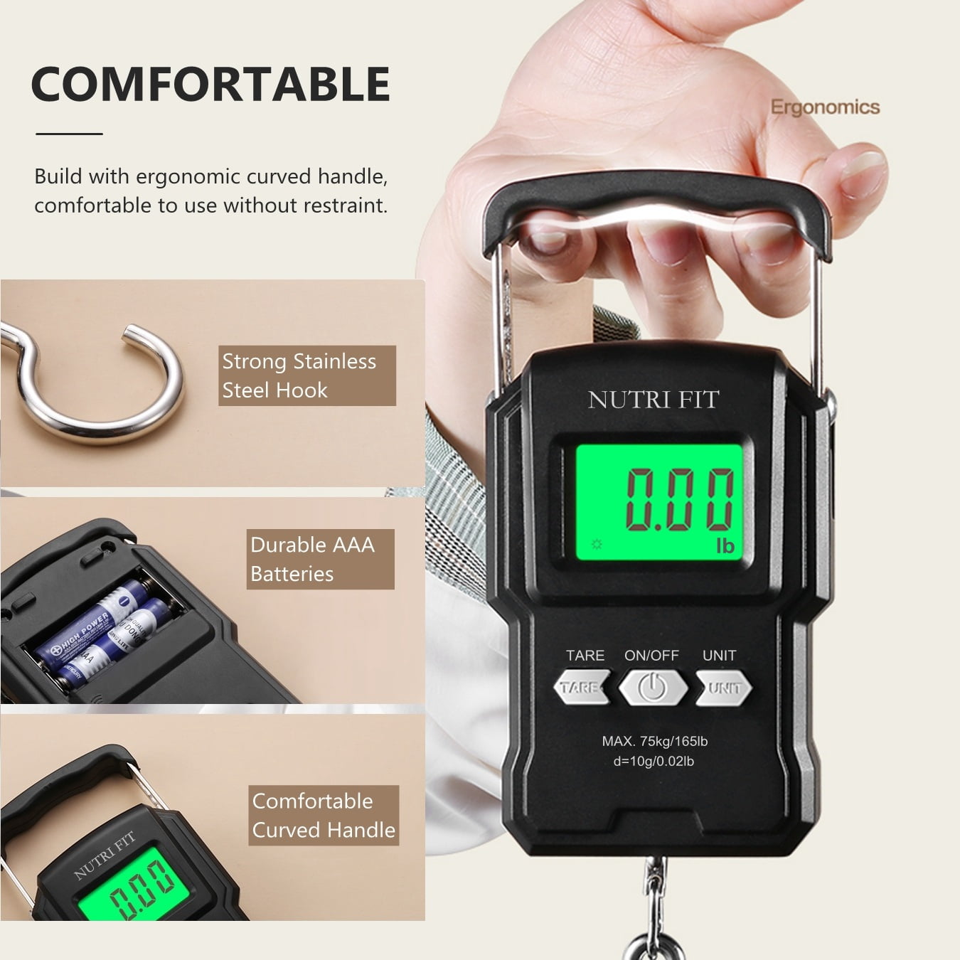 NUTRI FIT Digital Luggage Scale Portable Hanging Scale 165lb/75kg with Backlit LCD