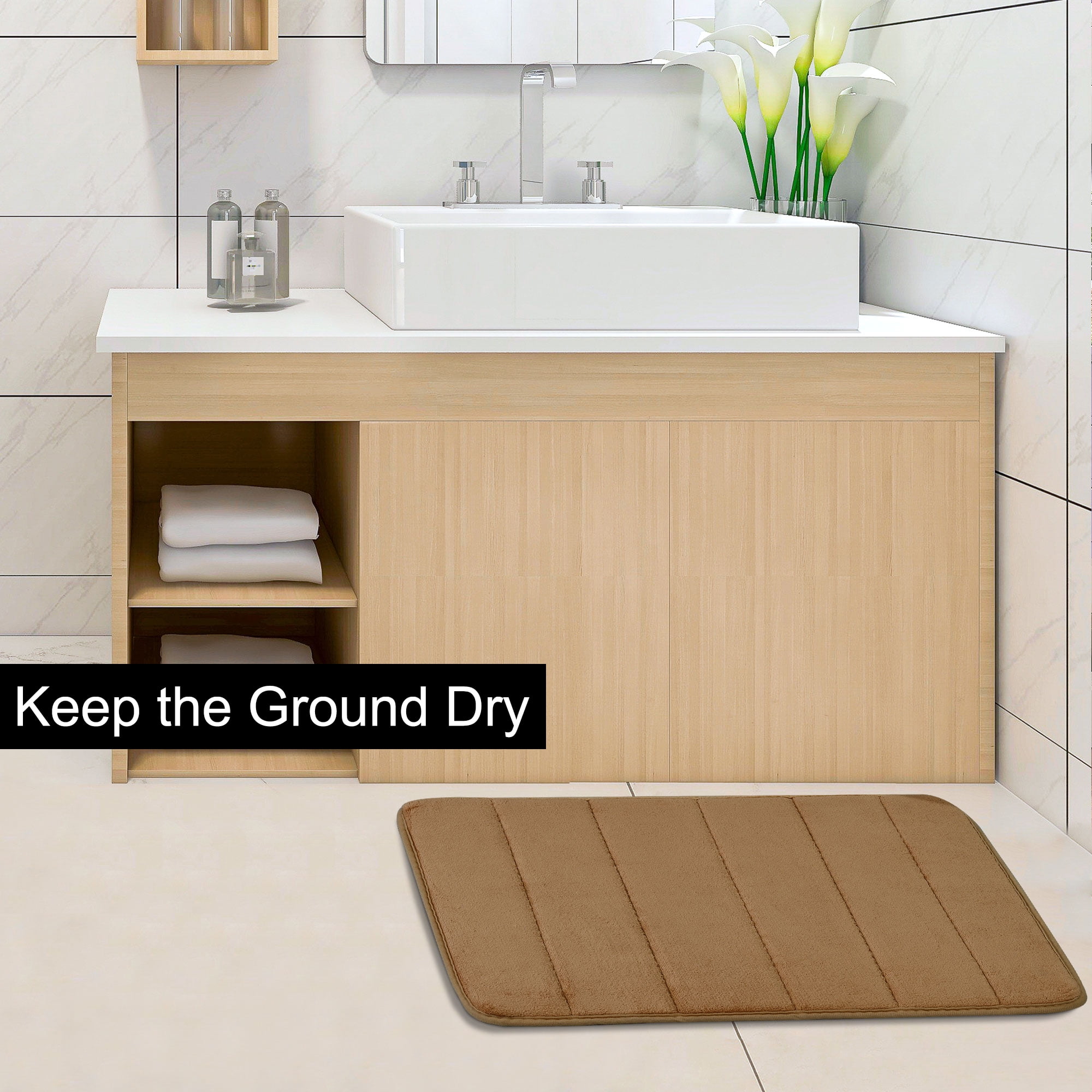PiccoCasa Memory Foam Absorbent Bath Floor Non-slip Mat Carpet, Khaki 32′ x 20′