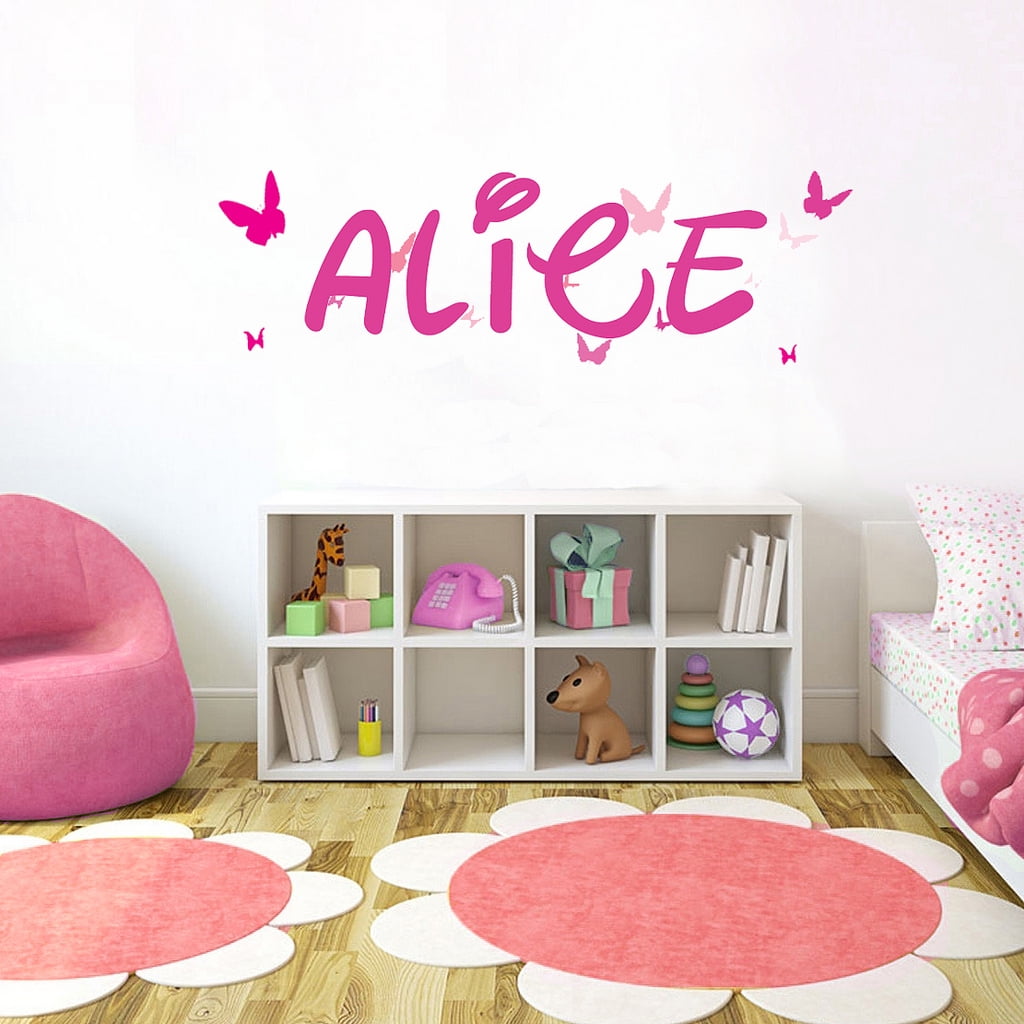 Pink Butterfly Font2 h4′ Made-to-Order Baby Name Kid Room Nursery Wall Art Clear Vinyl dcor Decal Sticker