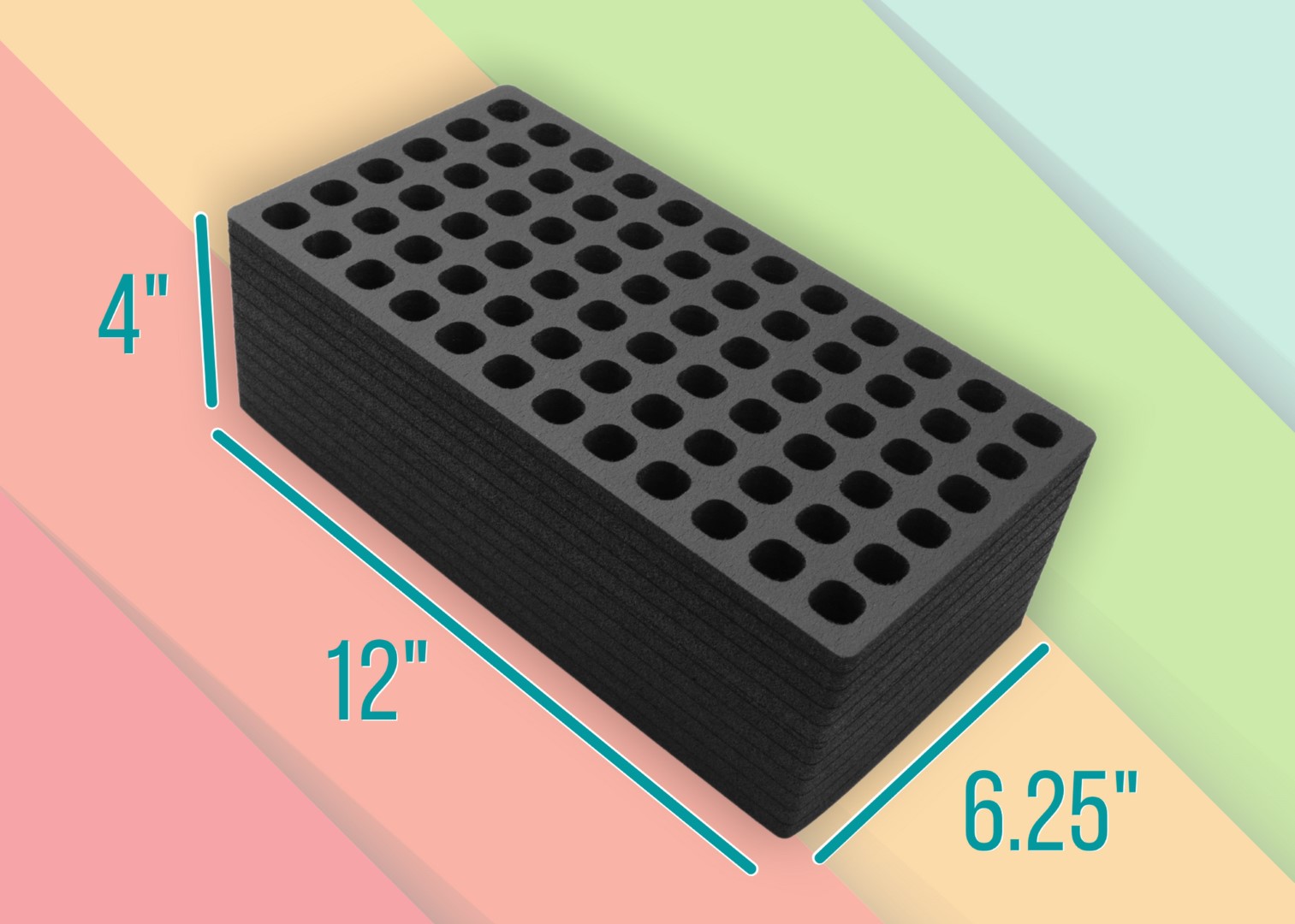 Keep your frequently used markers neat, organized and all within easy reach with the premium Polar Whale Premium Marker Storage Organizer. Includes 1 black high density foam organizer (with pockets to hold up to 72 markers). Compatible with Copic Sketch, Classic and Ciao markers, but also perfect for most markers, pens or pencils (up to 17mm wide). Markers can be stored either horizontally or vertically; Deep design lets specialty art markers rest in their ideal horizontal position. Made from elegant lightweight yet durable high density waterproof black foam material. This beautiful organizer is non-slip, non-scratch, anti-rattle and super-easy to clean (rinse it off, or wash it in the top rack of your dishwasher). Measures approximately 12" x 6.25" x 4", with 17mm wide slots.