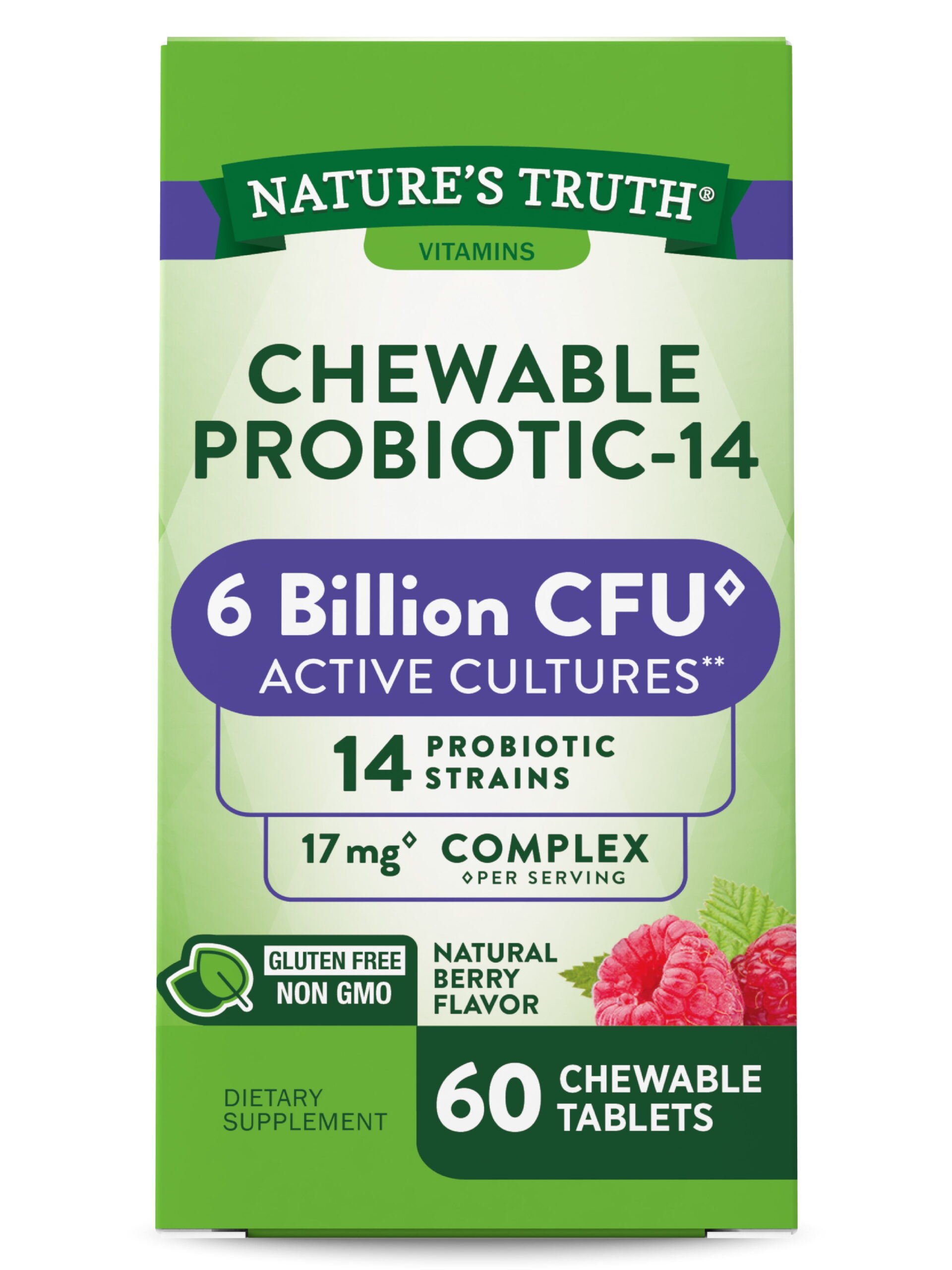 Probiotic Chewable for Men and Women |6 Billion CFU | 60 Count | 14 Strains | Natural Berry Flavor | Non-GMO & Gluten Free | By Nature’s Truth